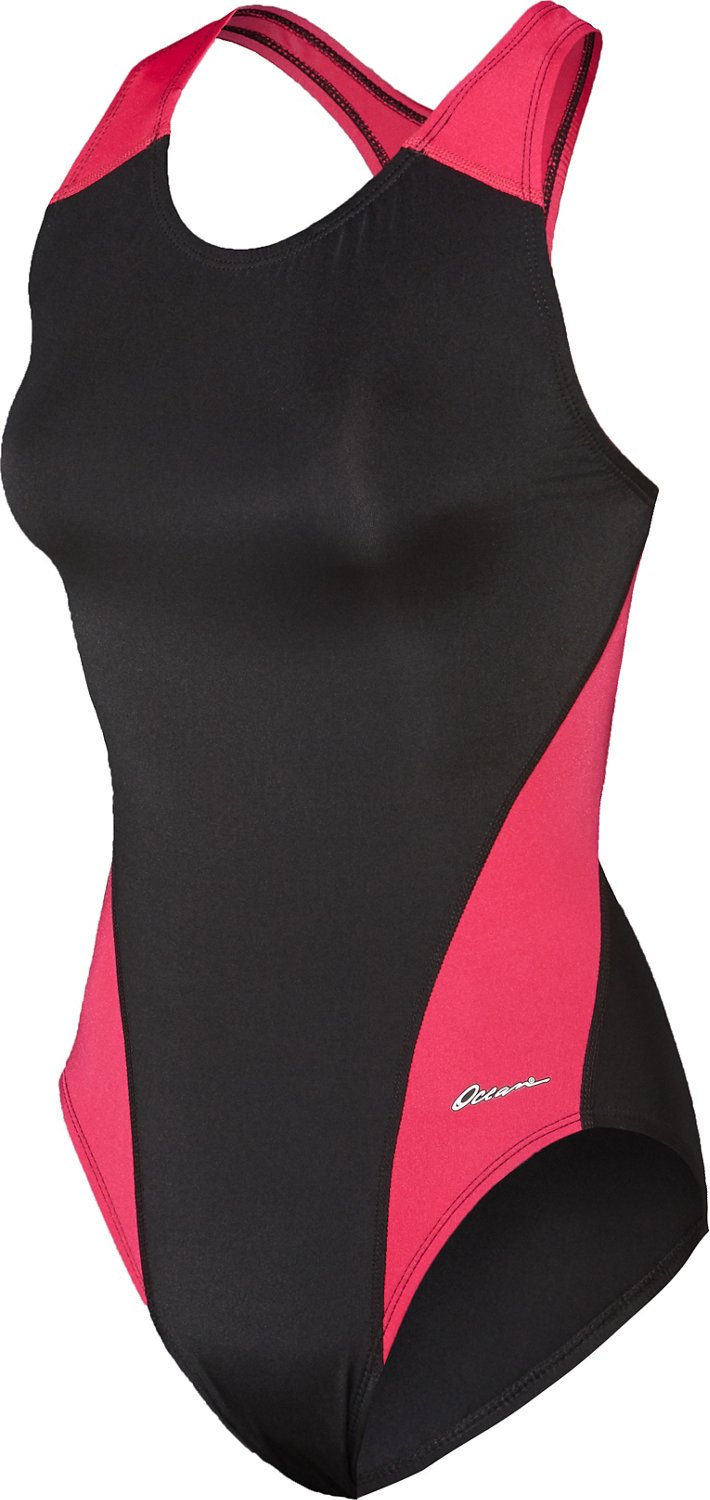 Gear up for your next swimming competition with this Dolfin Women's Ocean Panel Performance Back 1-Piece Swimsuit. Made of 85% nylon and 15% spandex, this swimsuit offers a wide range of motion, while the 100% polyester front lining delivers comfortable wear. The performance back and thick straps offer support as you swim lap after lap.