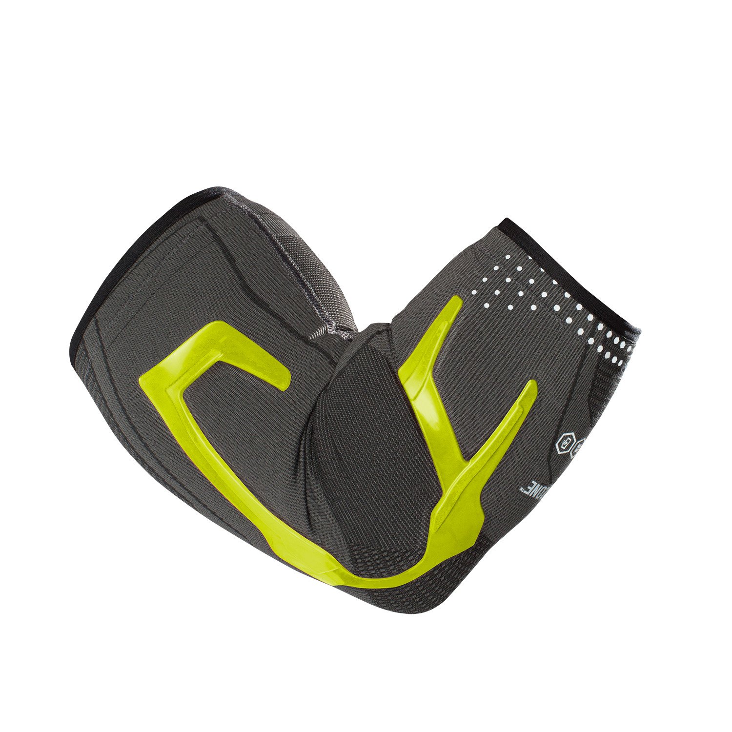 Stability compression zone with silicone banding targets pain from golf and tennis elbow, stabilizes the elbow joint and offers support to the bicep and tricep
