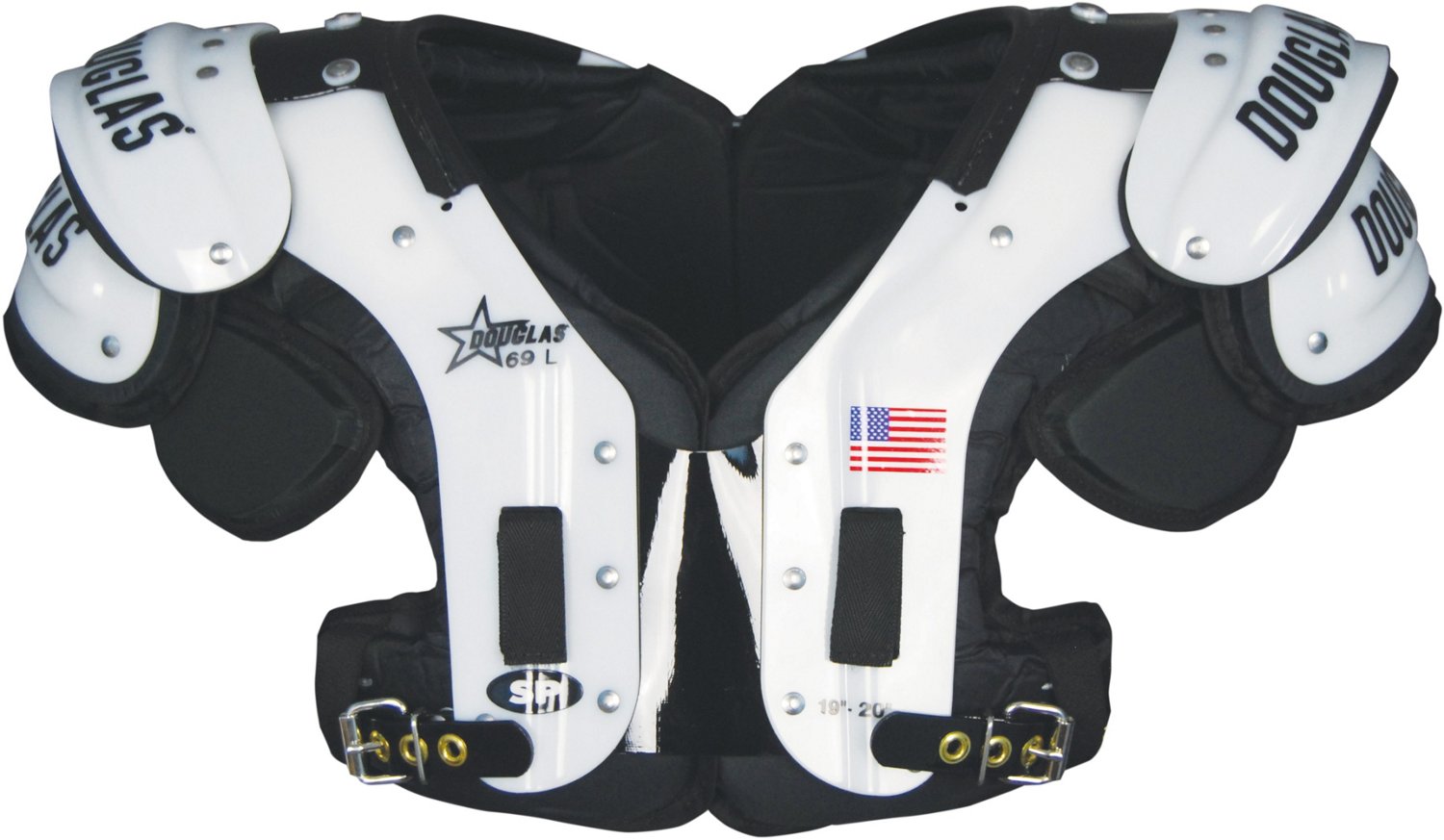 Be safe on the field with the Douglas Men's SP 69 Football Shoulder Pads. Made with flat, low-profile pads and Air Management technology, these shoulder pads deliver cushioned comfort and energy dispersion during hits. The cut-away arches with super-shaved SC-18 flaps and reverse cups boast maneuverability and lightweight performance.