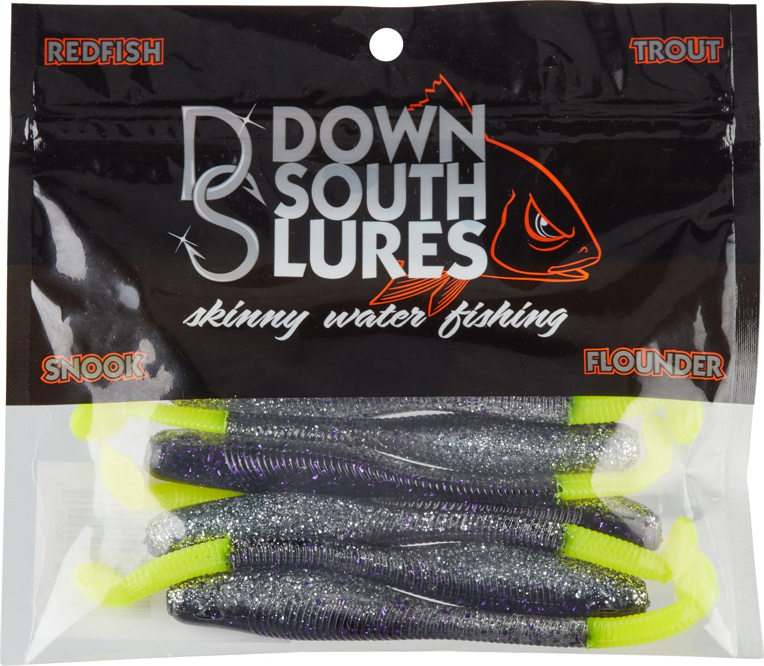 The Down South Lures 4-1/2" Salt Water Paddle Tail Swimbaits 8-Pack are designed to attract redfish, sea trout, flounder, snook and bass and measure 4-1/2" long. Includes 8 lures.