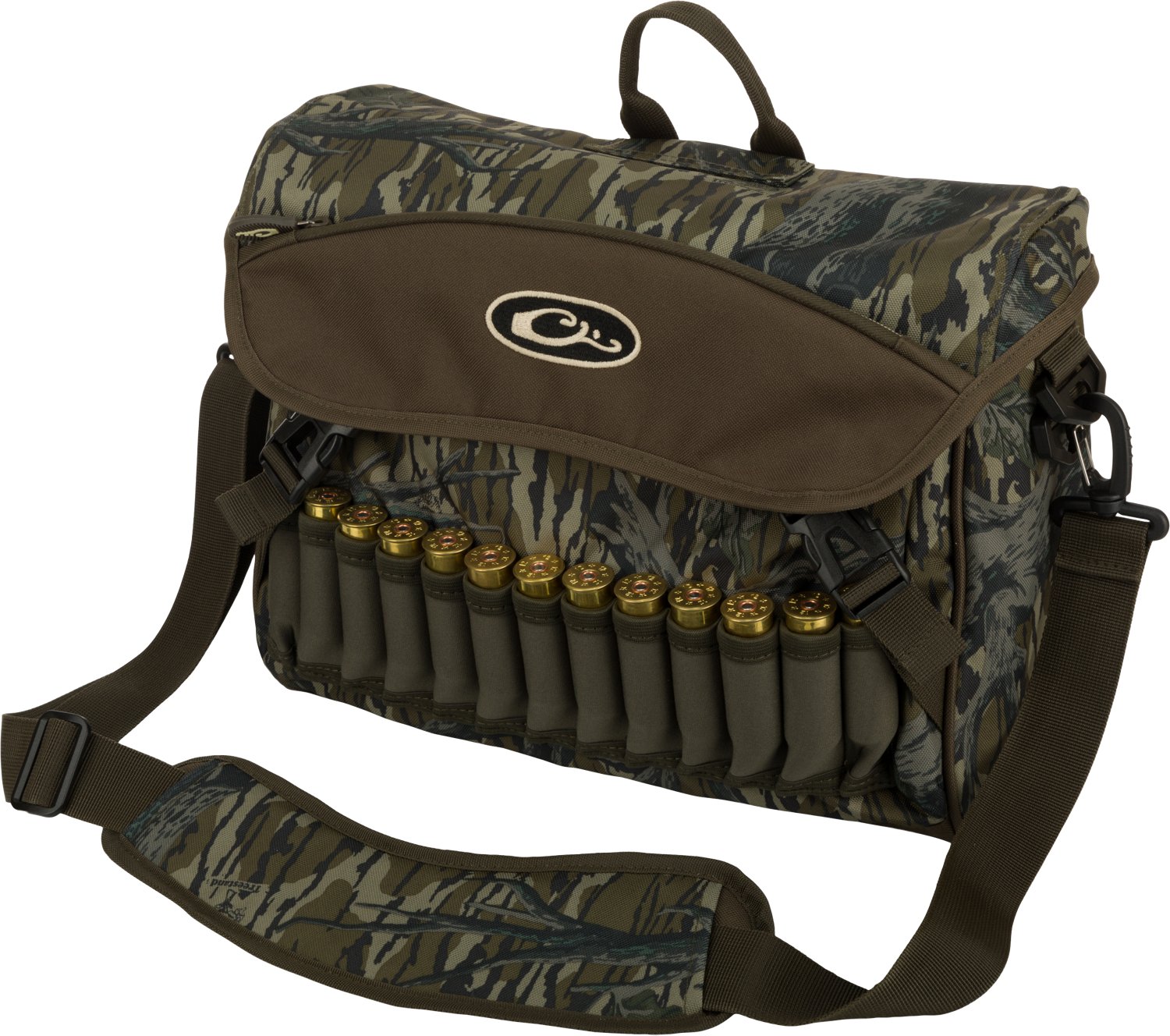The Drake Shoulder Bag 2.0 is the choice for many guides and outfitters because of its organization features and low-profile size. Modeled after a messenger bag or briefcase, the Shoulder Bag 2.0 is sized between the Shell Boss 2.0 and the larger Blind Bag 2.0. The bottom is slightly wider than the top so the bag stands up when fully loaded. Boasting 650 cubic inches of space, this bag provides ample storage for your ammunition and other hunting supplies. The adjustable strap and HD2 shoulder pad allow for comfortable carrying, while the thread-through handle enables easy hauling.