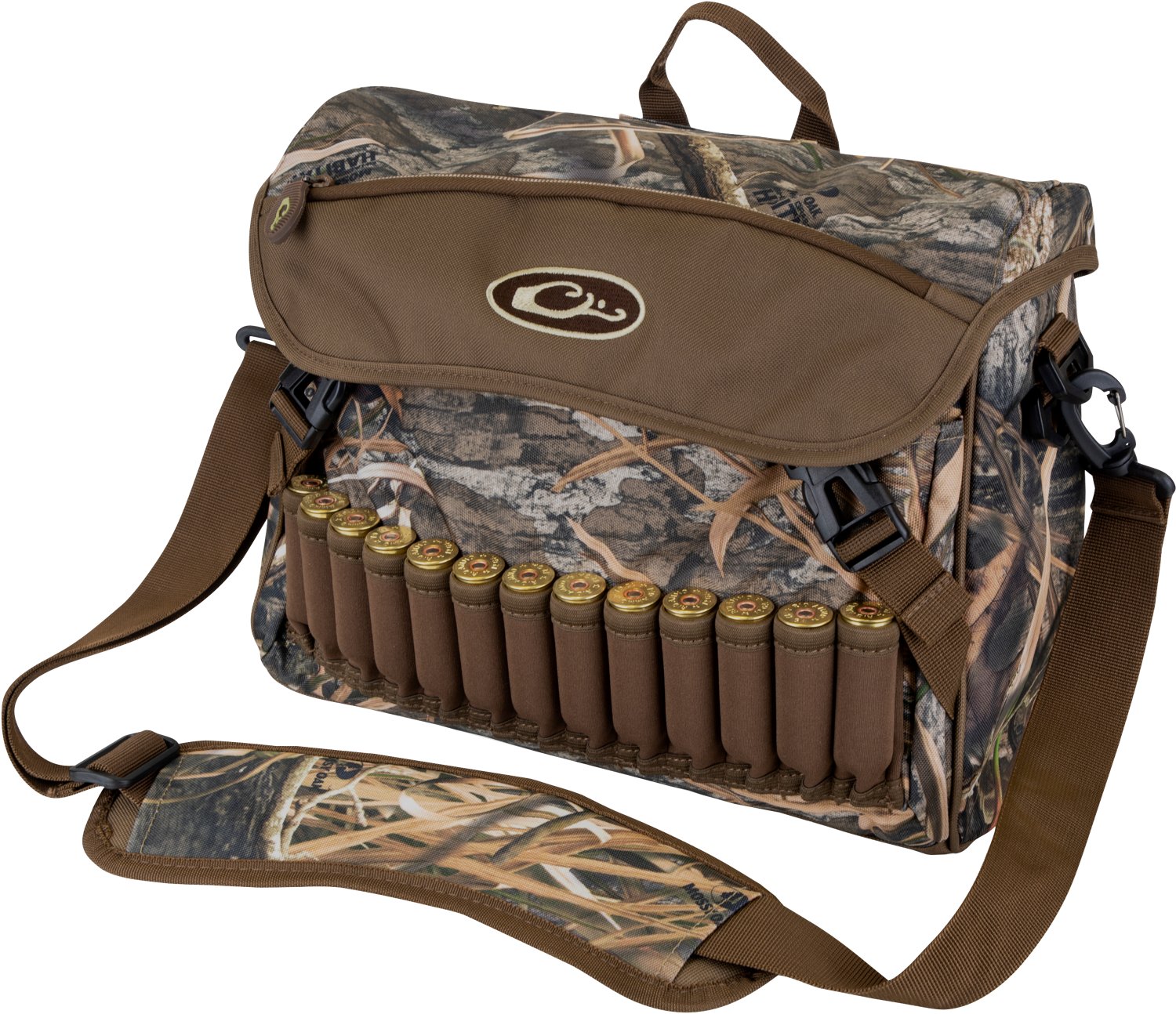 The Drake Shoulder Bag 2.0 is the choice for many guides and outfitters because of its organization features and low-profile size. Modeled after a messenger bag or briefcase, the Shoulder Bag 2.0 is sized between the Shell Boss 2.0 and the larger Blind Bag 2.0. The bottom is slightly wider than the top so the bag stands up when fully loaded. Boasting 650 cubic inches of space, this bag provides ample storage for your ammunition and other hunting supplies. The adjustable strap and HD2 shoulder pad allow for comfortable carrying, while the thread-through handle enables easy hauling.