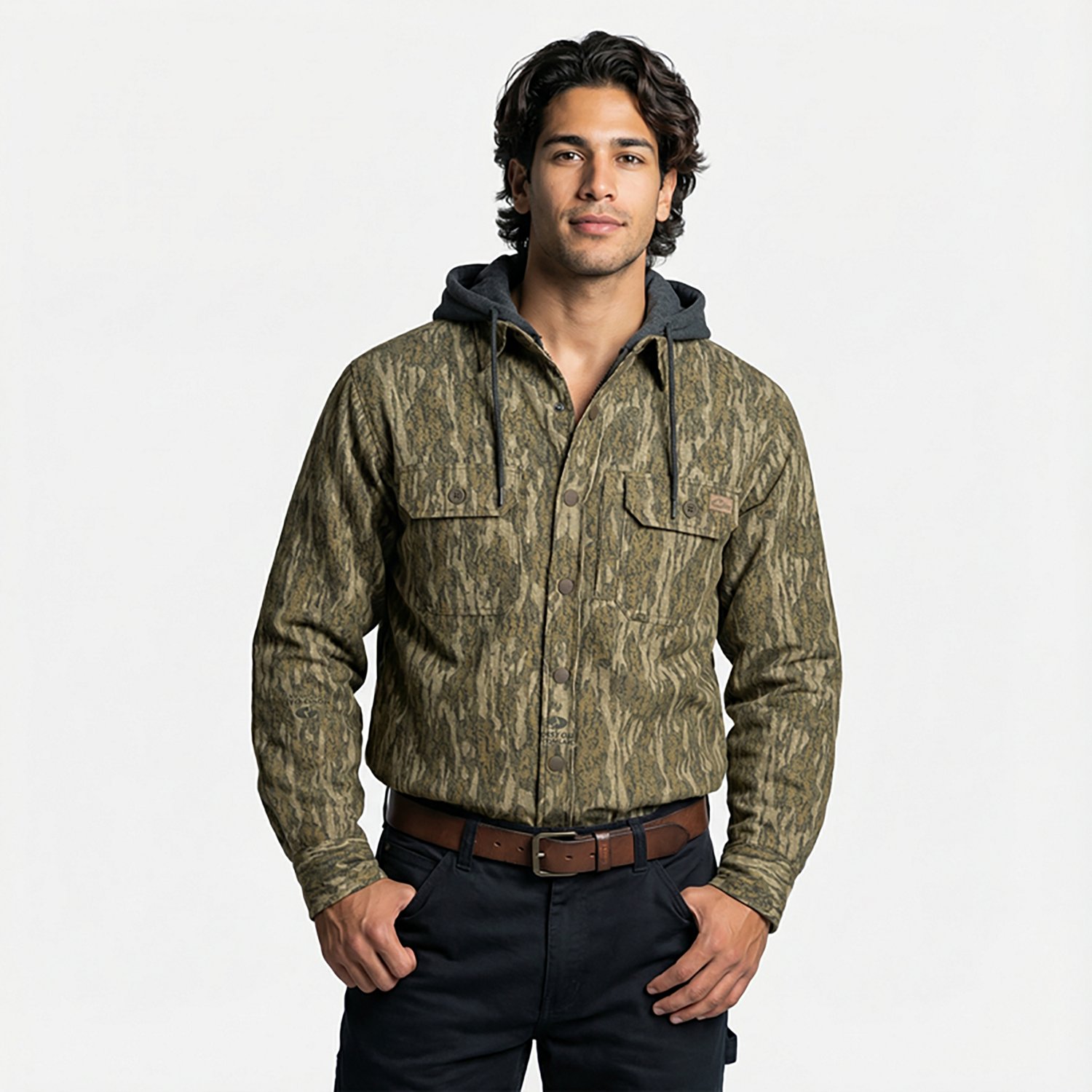 Head out for the day with the Drake Men's Campfire Flannel Camo Hoodie. The cotton and polyester material provides a comfortable feel, while the interior insulation offers warmth. The hood and drawstring combo delivers adjustable coverage.