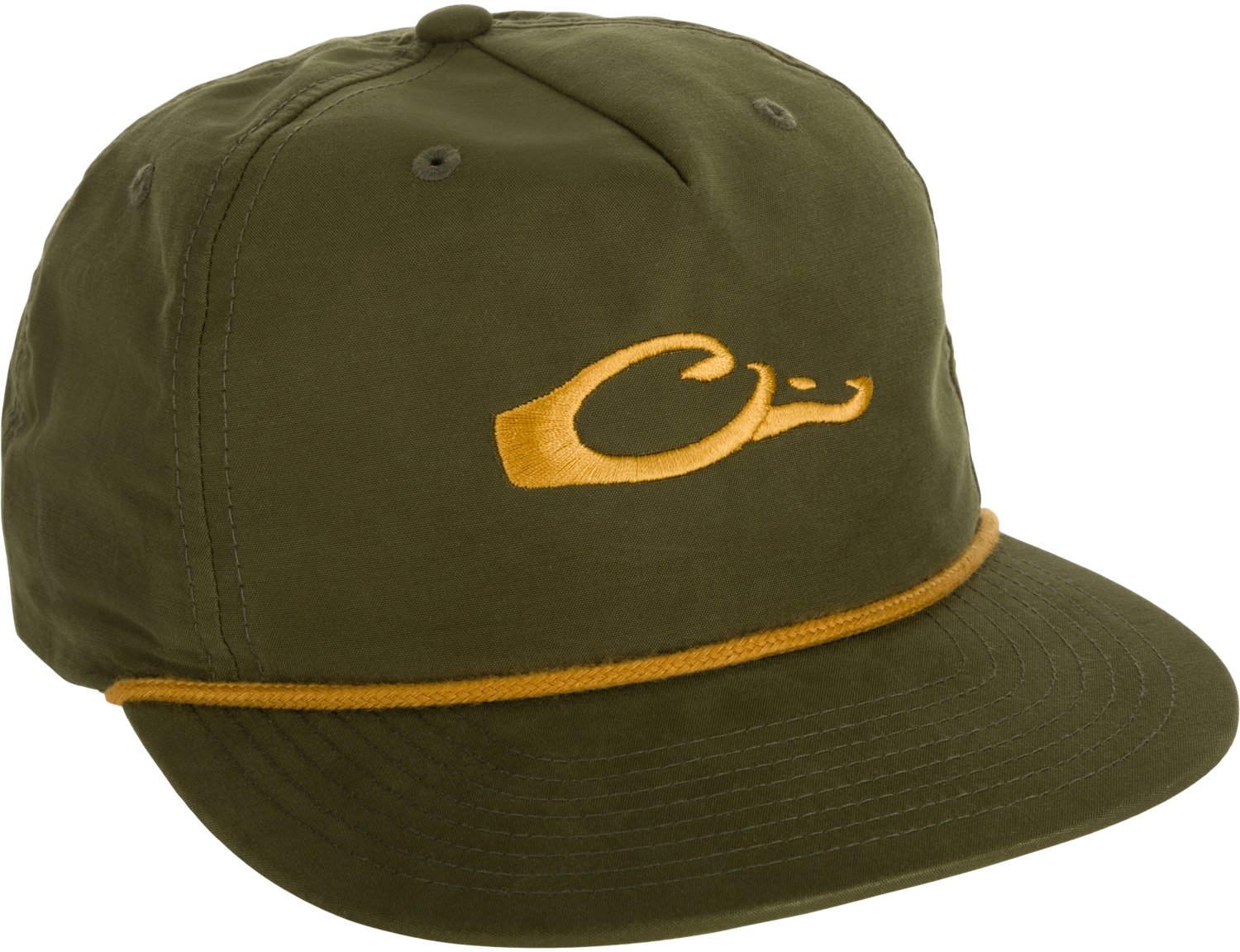Stay cool with the Drake Men's Logo Rope Cap. The cotton and nylon material provides a comfortable feel, while the UPF 50 sun protection shields against harmful UV rays. The adjustable snapback closure offers a custom fit, and the logo adds a stylish look.