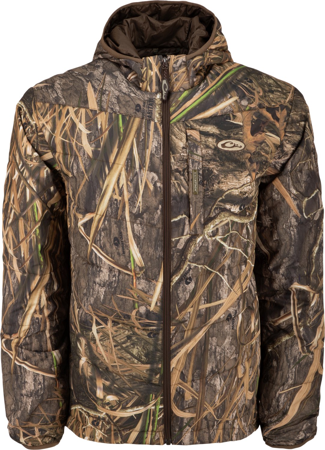 The Drake Men's MST Synthetic Down Hooded Jacket is designed for warmth and comfort during cooler outings. Crafted from 100% polyester, this jacket features 140-gram synthetic down insulation, delivering a cozy layer without added bulk. The durable shell fabric has a DWR treatment that helps to keep moisture at bay, making it a versatile option for various outdoor conditions. An insulated hood adds extra protection, while the draw cord adjustable waist allows quick, one-handed adjustments with tethered cord locks. The convenient Magnattach™ chest pocket and lower slash pockets provide easy storage for essentials, making this jacket a functional choice for any adventure.