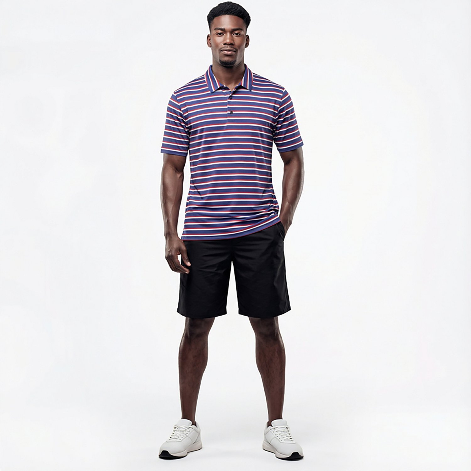 Head out to the course or enjoy a night in with family in the Drake Men's Performance Stripe Short Sleeve T-shirt. Soft fabric moves with you, and the material wicks sweat.