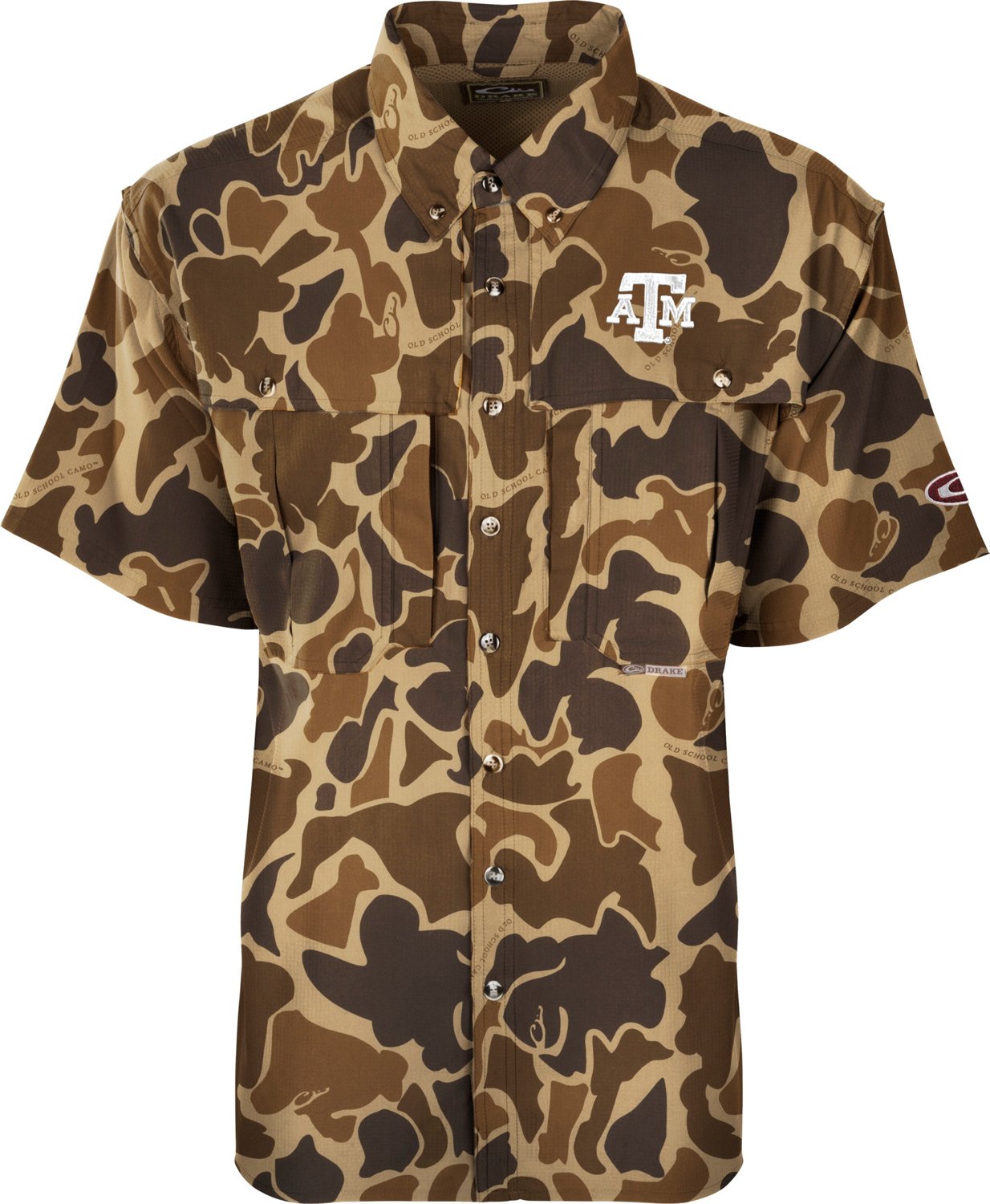 Drake Men's Texas A&M University Old School Camo Flyweight Wingshooter Button Down Shirt
