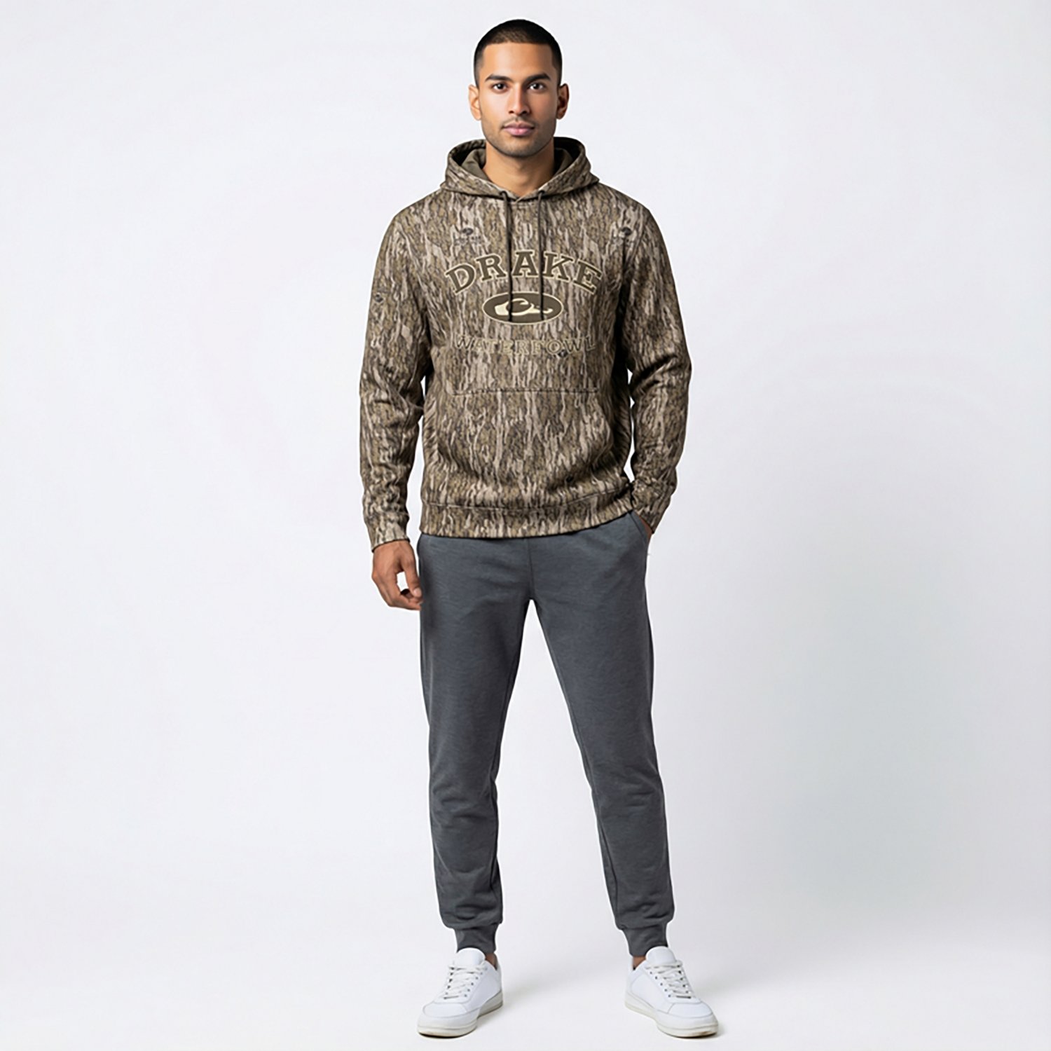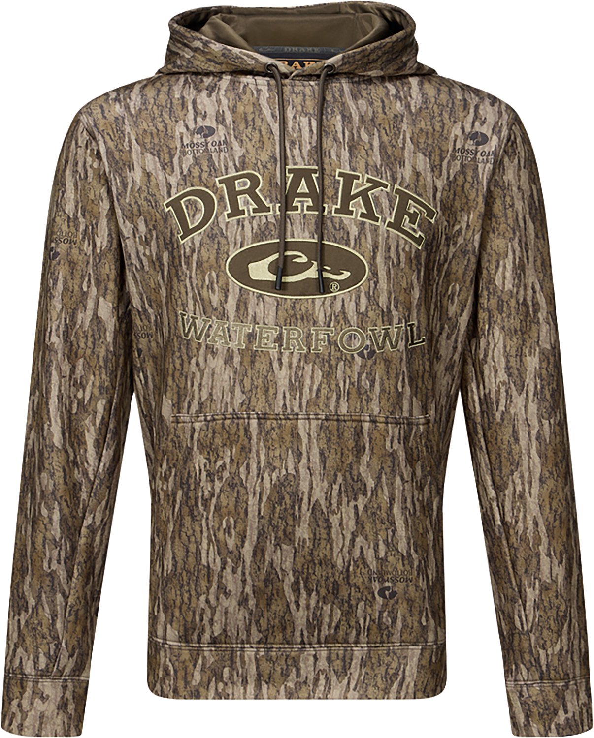 Stay comfortable on the hunt when you wear the Drake Waterfowl Adults' Performance Hoodie. It is made of 92% polyester and 8% spandex fleece. The built-in stretch provides unrestricted movement, and its kangaroo pocket offers convenient hand warmth. The lined hood with an adjustable drawstring allows for a customizable fit.