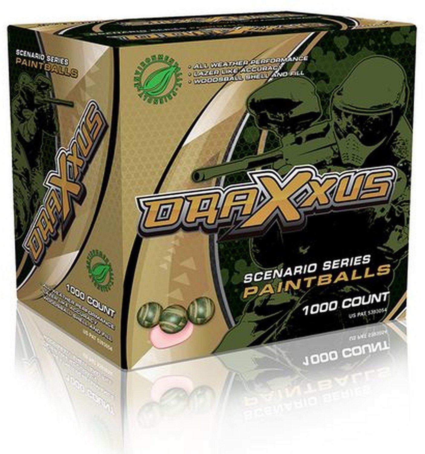 Have fun with the Draxxus Scenario .68 Caliber Camouflage Print Pink-Filled Paintballs 1,000-Pack. These paintballs work with .68 caliber paintball markers and also remain durable in any weather condition. They have a camouflage print and a bright fill so everyone will know that you've hit your target.