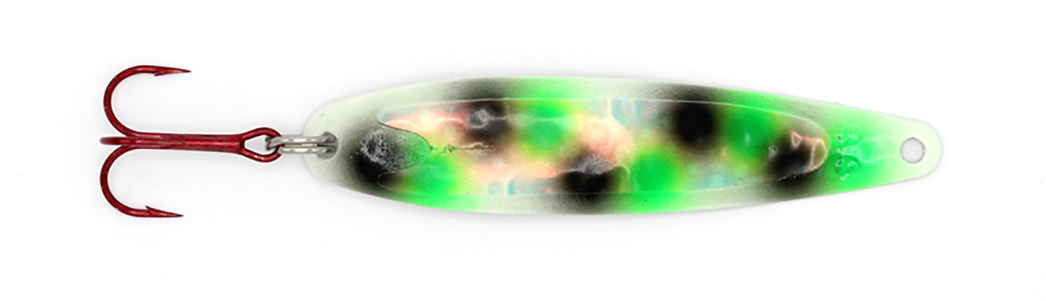 Reel in your next catch with the help of the Dreamweaver Super Slim 1/2 oz. Trolling Spoon. It entices steelhead, lake trout, coho, and chinook salmon. The spoon performs at all depths and in all light conditions, and its sleek, low profile design, and light reflecting micro hex pattern make it irresistible to pelagic predators. The single treble hook improves fish release.