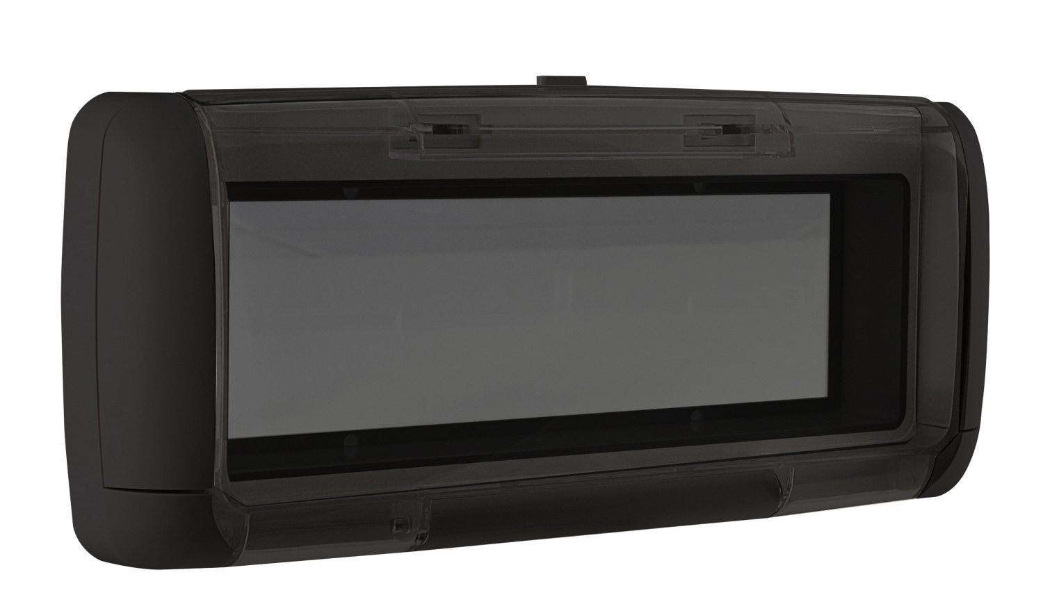 Keep your marine raido dry and protected from cresting waves with the Dual Universal Splashguard. Made of ABS polymer for watertight, high-temperature and UV-resistant protection, the splash guard features a recessed design that fits most 1.0 DIN headunits and universal mounting with a transparent, fold-down door and rubber seal.