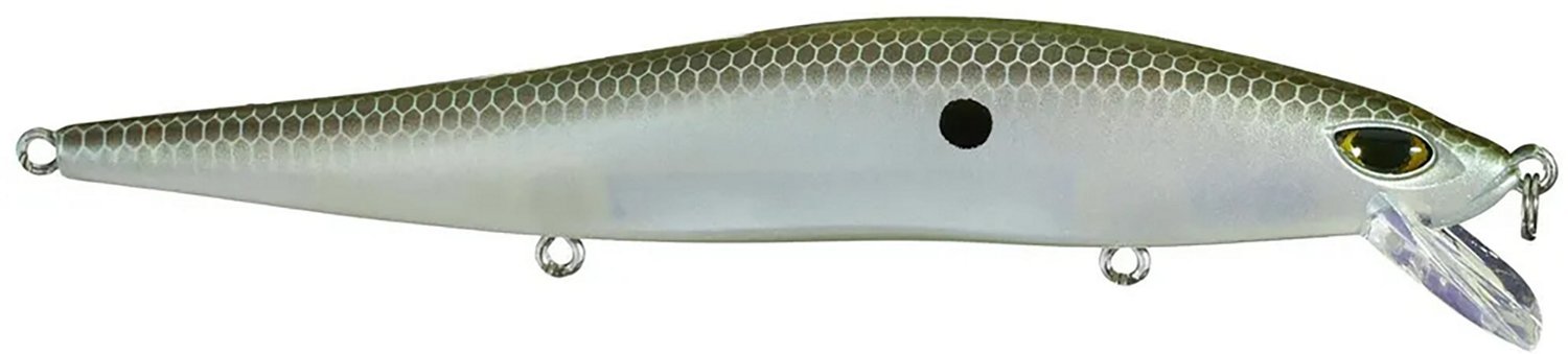 Catch plenty of bass with the Duckett Fishing DB Reveal Sinking FFS 4-1/2 in Jerkbait. This bait sinks at a rate of 1-1/2 feet per second and has an internal weight transfer system that make it easy to reel in. The wide brim bill creates a realistic action and makes it visible on sonar, while the 3-D eyes create a finished look. The attached treble hook secures your catch.