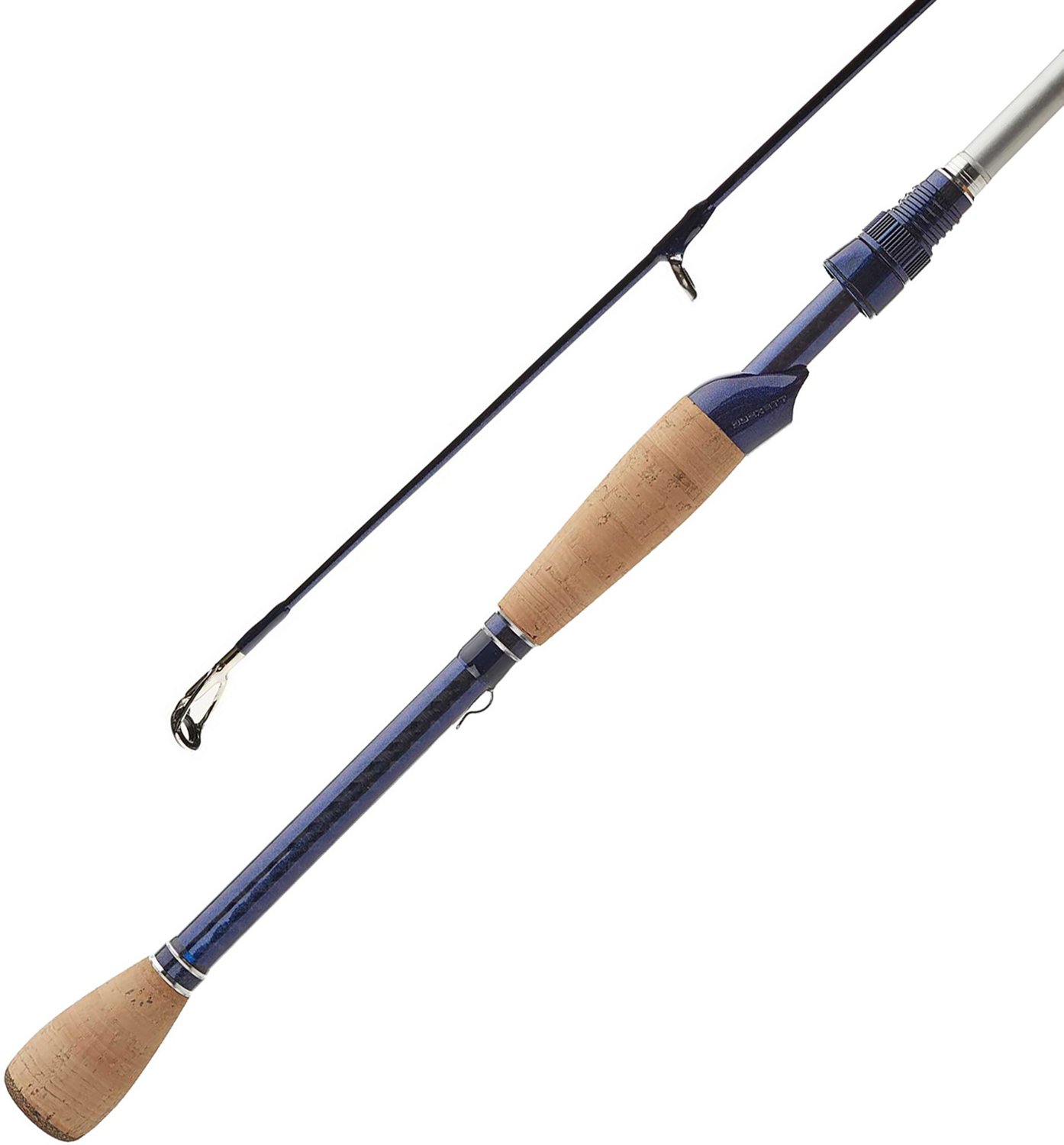 Fish for bass with the Duckett Wheeler Select 7 ft 1 in M Freshwater Spinning Rod. The high tonnage multi-modulus graphite blank affords lightweight durability, while the cork handle offers a firm grip. The decorative butt cap provides control, and the 9 guides help keep the line free of tangles.