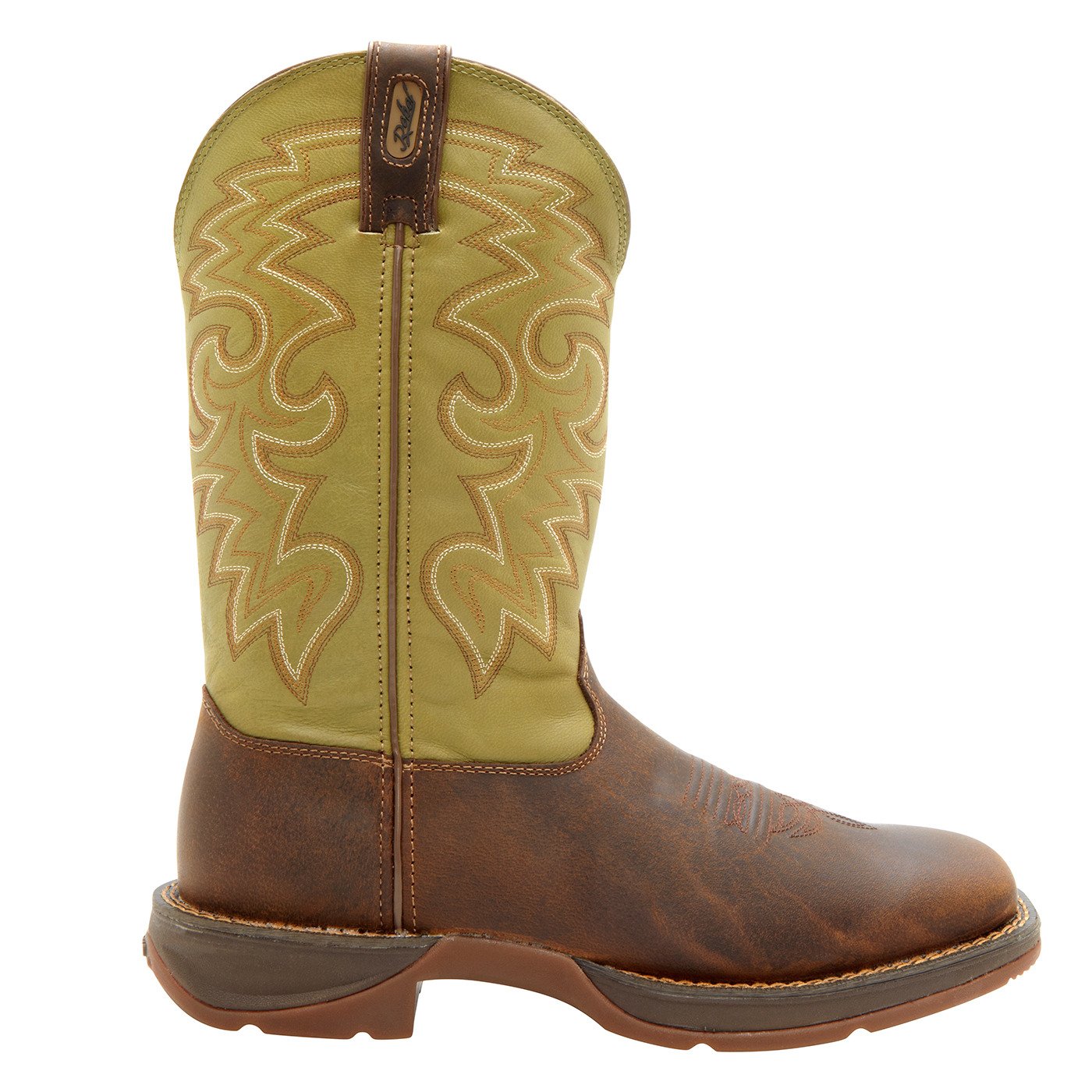Designed with full-grain leather uppers, square toes and rocker heels, the Durango Men's Rebel Pull-On Western Boots offer for a cool, western look. These shoes feature removable Cushion Flex insoles and dual-density rubber and EVA outsoles for comfortable wear and tempered-steel shanks with a rolled shank area for support. Double-row welt stitching.