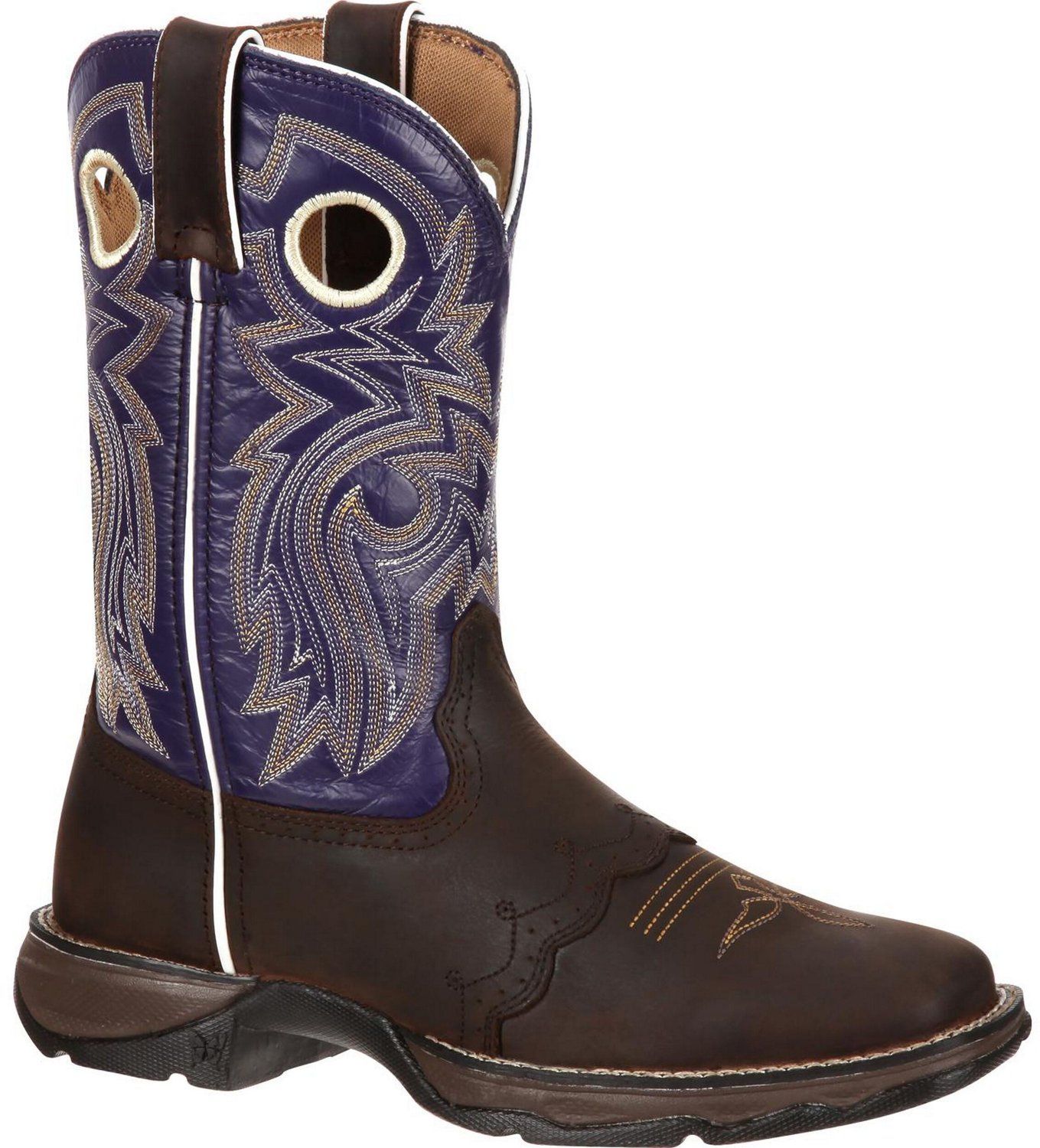 Showcase your stylish side whenever you step out in the Durango Women's Lady Rebel Twilight N' Lace Saddle Western Boots. The durable full-grain leather uppers boast an eye-catching 2-tone design. The Cushion Flex insoles and ventilated footbeds help keep you comfortable throughout the day, and the dual-density, slip-resistant outsoles give you sure footing on slick surfaces.