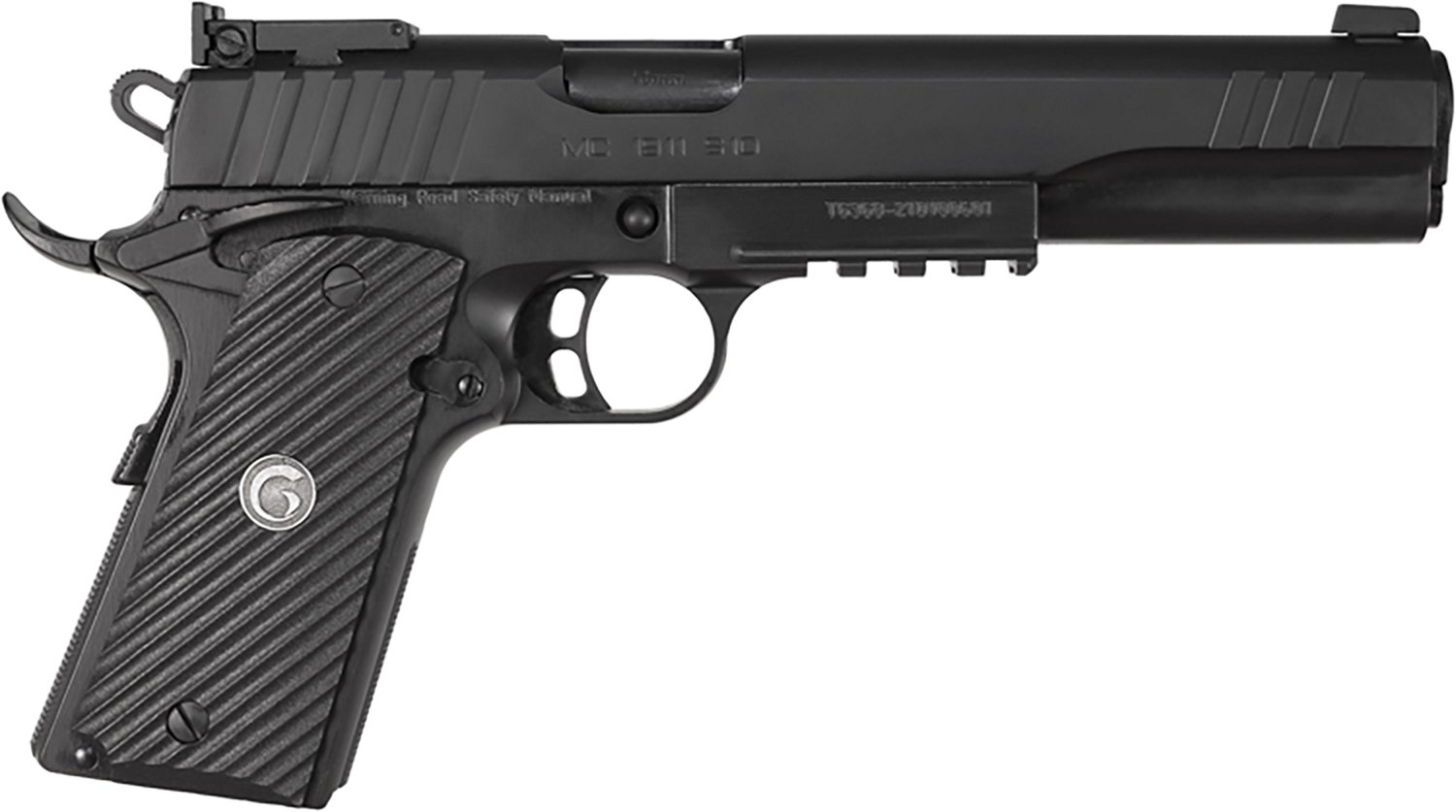 The EAA Corp MC1911 Hunter 10mm Pistol is single action and has an 8+1-round capacity. It's built with a steel frame, serrated steel slide and a synthetic grip. A skeletonized trigger, fully adjustable rear super sight and an extended checkered beavertail complete the design.