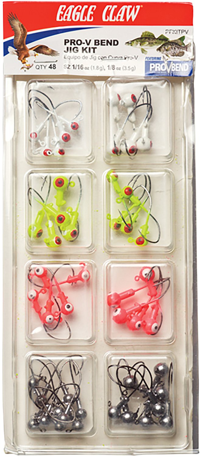 If you want durability and dependable performance, make sure you have the Eagle Claw Assorted Pro-V Ball Head Jig Kit for your next fishing trip. The kit comes with 48 Pro-V jigs that offer sharp hooks and forged points, and their bended design helps lock in fish.