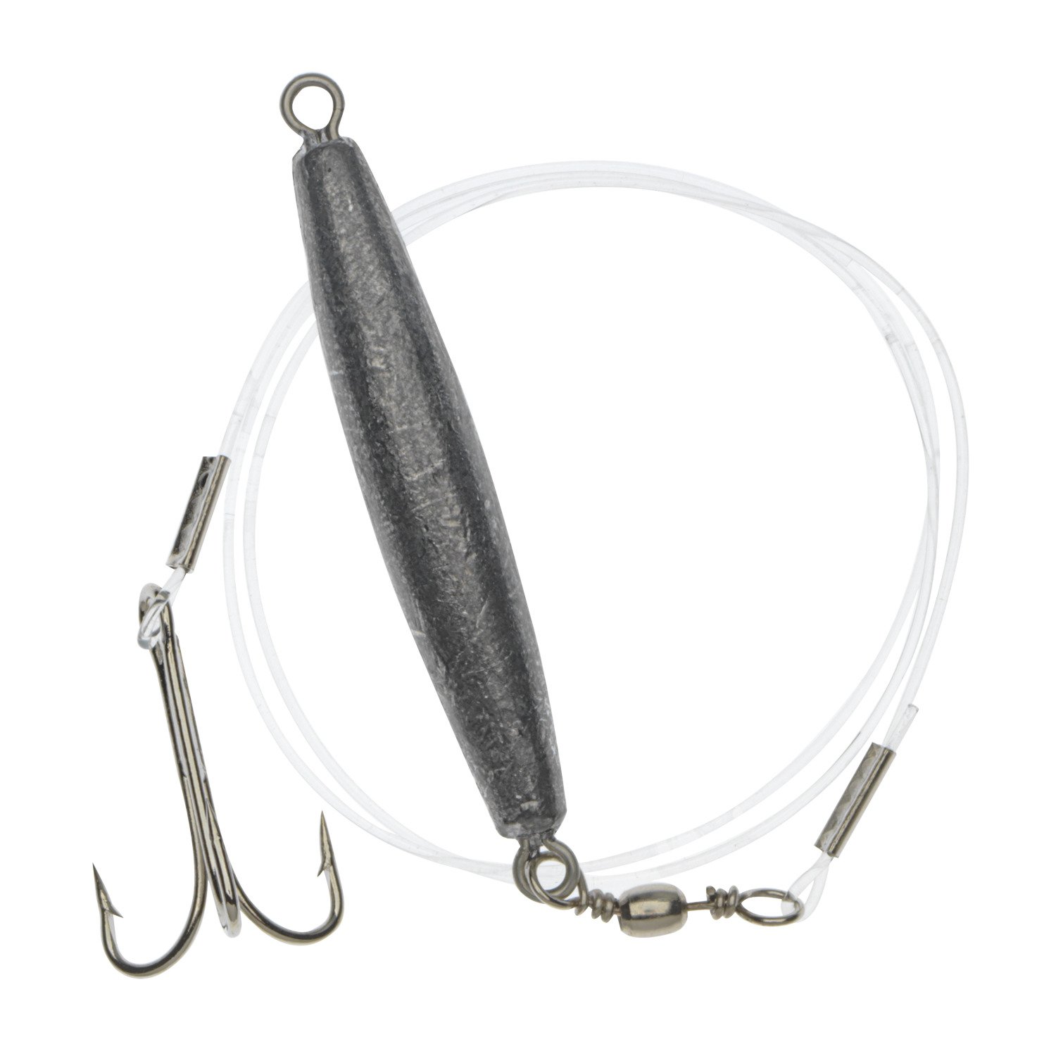 With 30 lb. mono fishing line and a built-in size 6 Lazer Sharp treble hook, the Eagle Claw Lazer Ready Bait Rig delivers a ready-to-use design. Lead surf and river weights help keep your bait in the water. Ideal for saltwater trout and redfish.