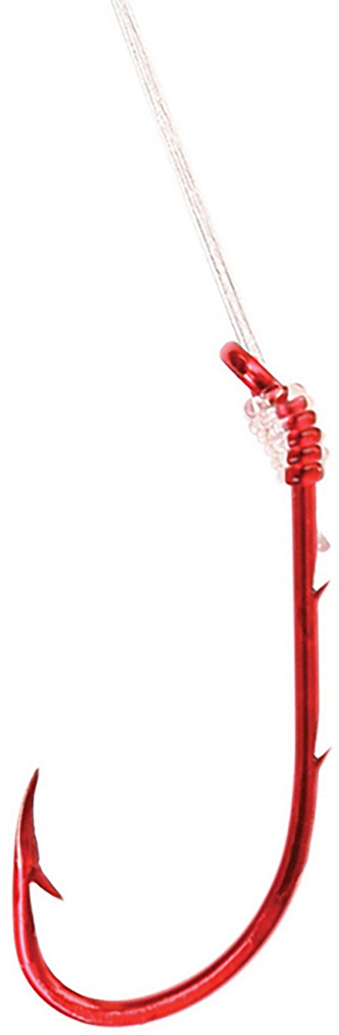 Reel in your next catch with the Eagle Claw Snelled Baitholder 8/0 Red Hook 6-Pack. It is for use in freshwater and saltwater fishing. The red finish enhances visibility in deep waters, and its forged shank adds strength. The straight point efficiently penetrates the fish.