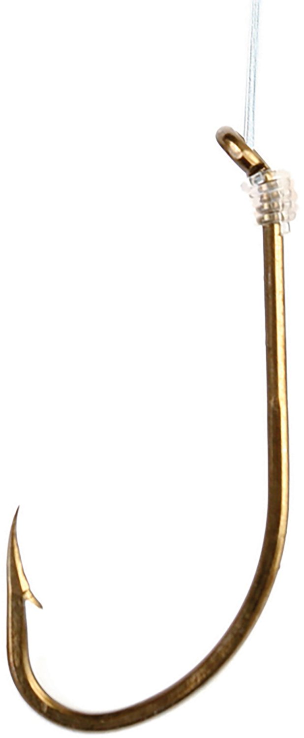 Reel in your next catch with the Eagle Claw Snelled Plain 8/0 Shank Hook 6-Pack. It is for use in freshwater fishing. The bronze finish provides a better glide, and its plain shank offers a versatile and natural presentation. The down eye allows for better bead placement.