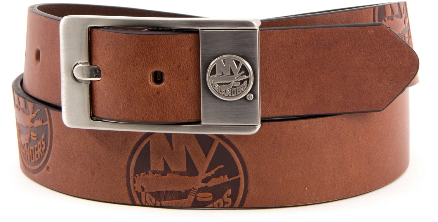 Function meets style with the Eagle Wings Men's New York Islanders Brandish Belt. The leather construction offers durability, while the polished buckle ensures a snug fit. The team logo shows off your Islanders pride.