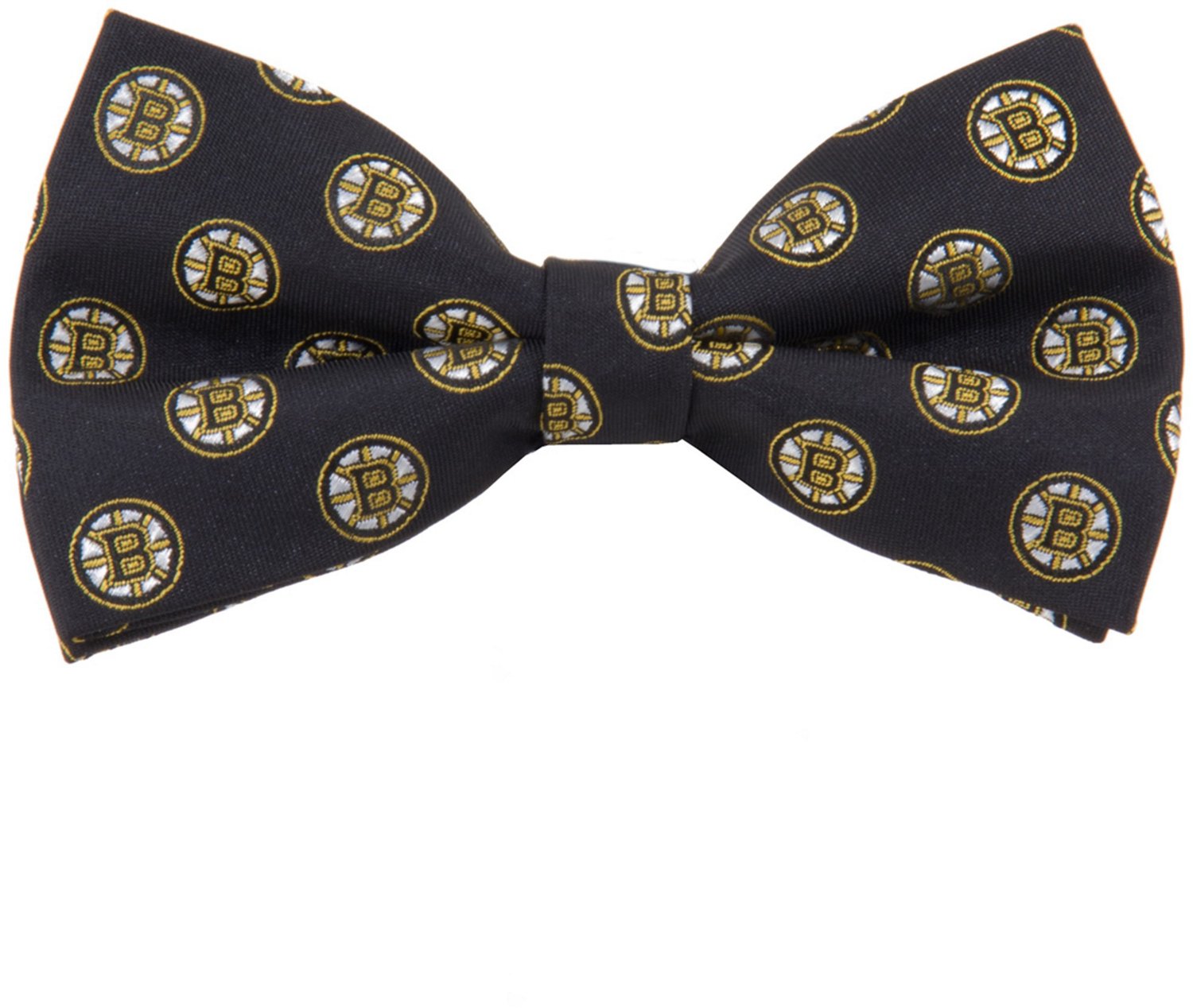 Cheer on the Bruins in fashion by wearing the Eagles Wings Boston Bruins Woven Polyester Repeat Bow Tie. The 100% woven polyester construction provides a soft feel, and the repeating team graphics help prove your loyalty.