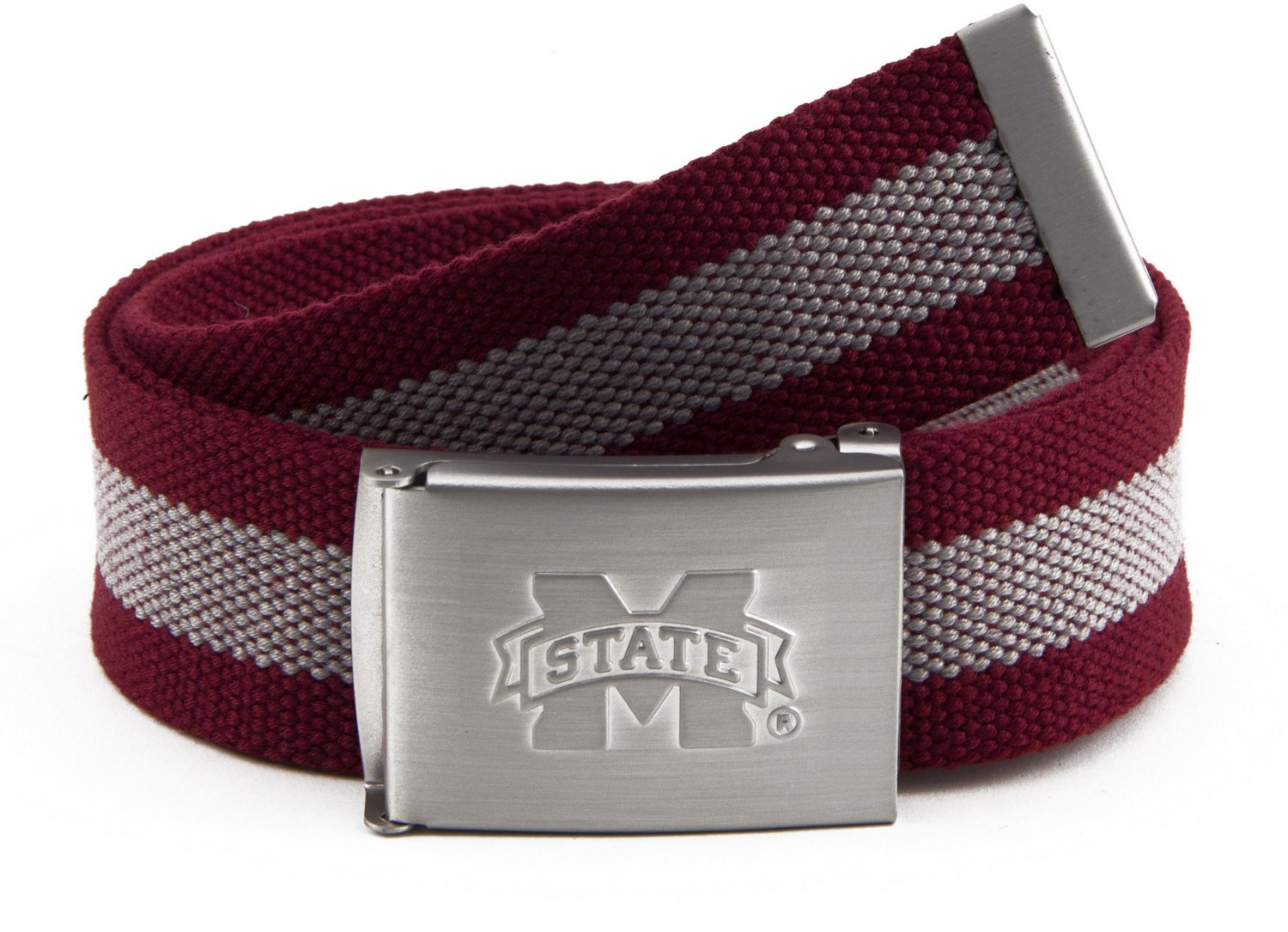 Root for the Bulldogs in the Eagles Wings Mississippi State University Fabric Belt. Tough nylon construction withstands plenty of wear, and the metal team logo buckle shows off team pride.