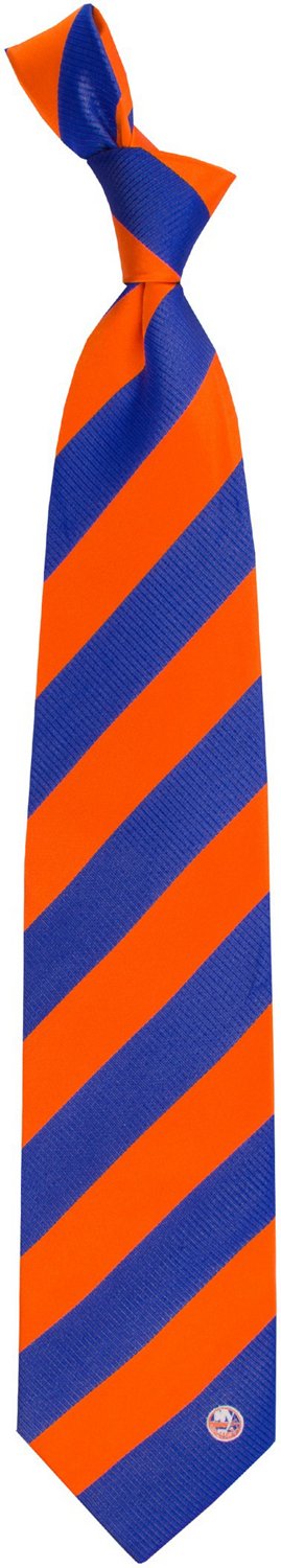 Look cool and classy in an Eagles Wings New York Islanders Regiment Woven Silk Tie. The 100% woven silk construction has a sleek look and feel, while the diagonal stripe pattern displays bold team colors and an Islanders team logo.
