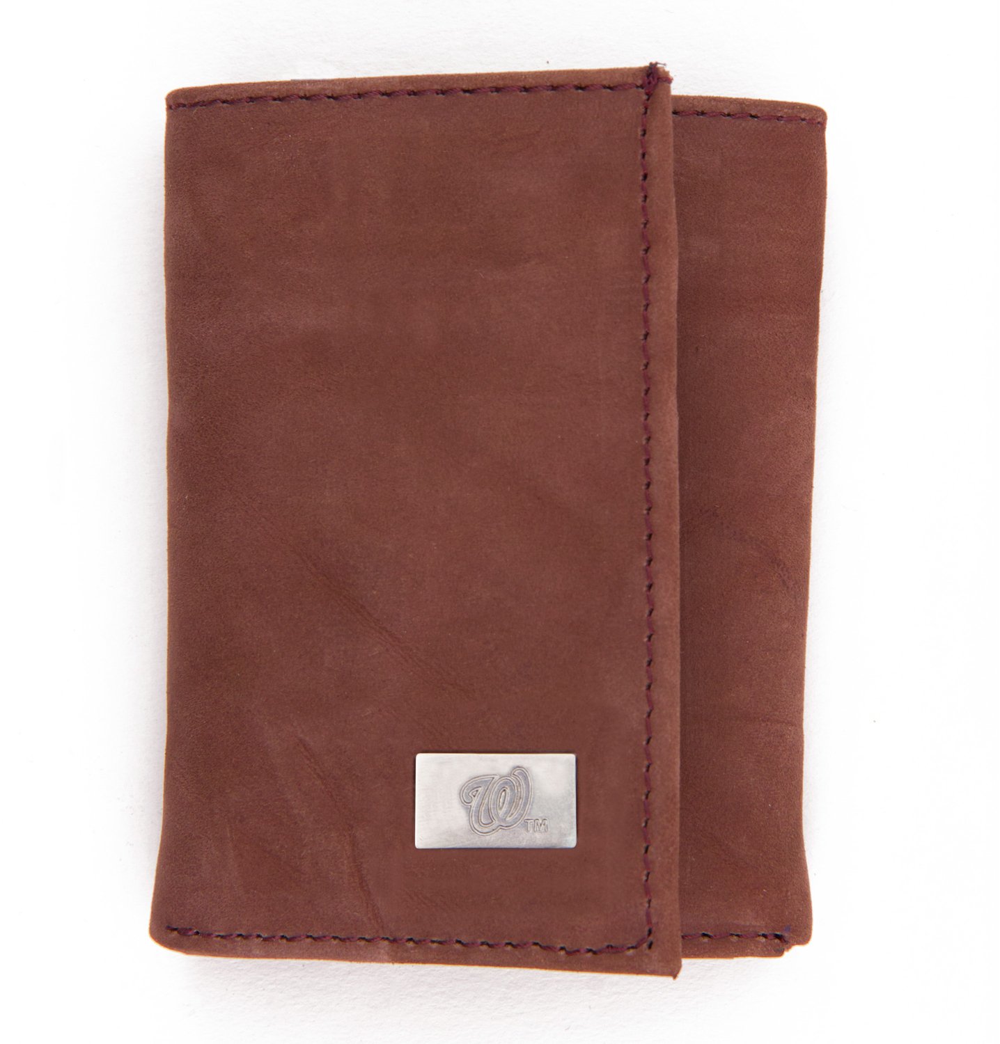 Keep your cards and cash close at hand with an Eagles Wings Washington Nationals Leather Tri-Fold Wallet. It offers ample storage with 12 card slots, a billfold pocket and a display window for your ID. Genuine cowhide leather adds a silky feel, while a metal concho celebrates your love for the Nationals.