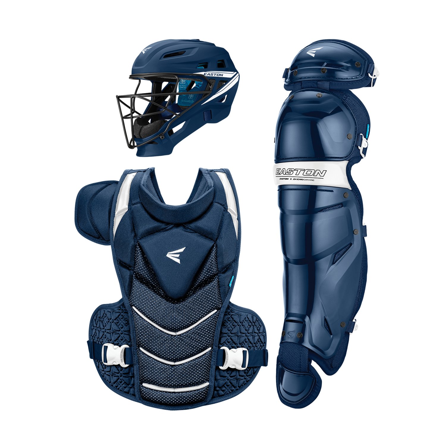 Protect yourself while catching fast-pitched softballs with the EASTON Jen Schro The Very Best Catchers Set. This set includes a helmet with an ABS thermoplastic shell and steel cage, a chest protector with an easy-adjust system and leg guards with a neoprene knee strap and padding. Designed to improve performance on the softball field, this kit is made with durable high-density foam.