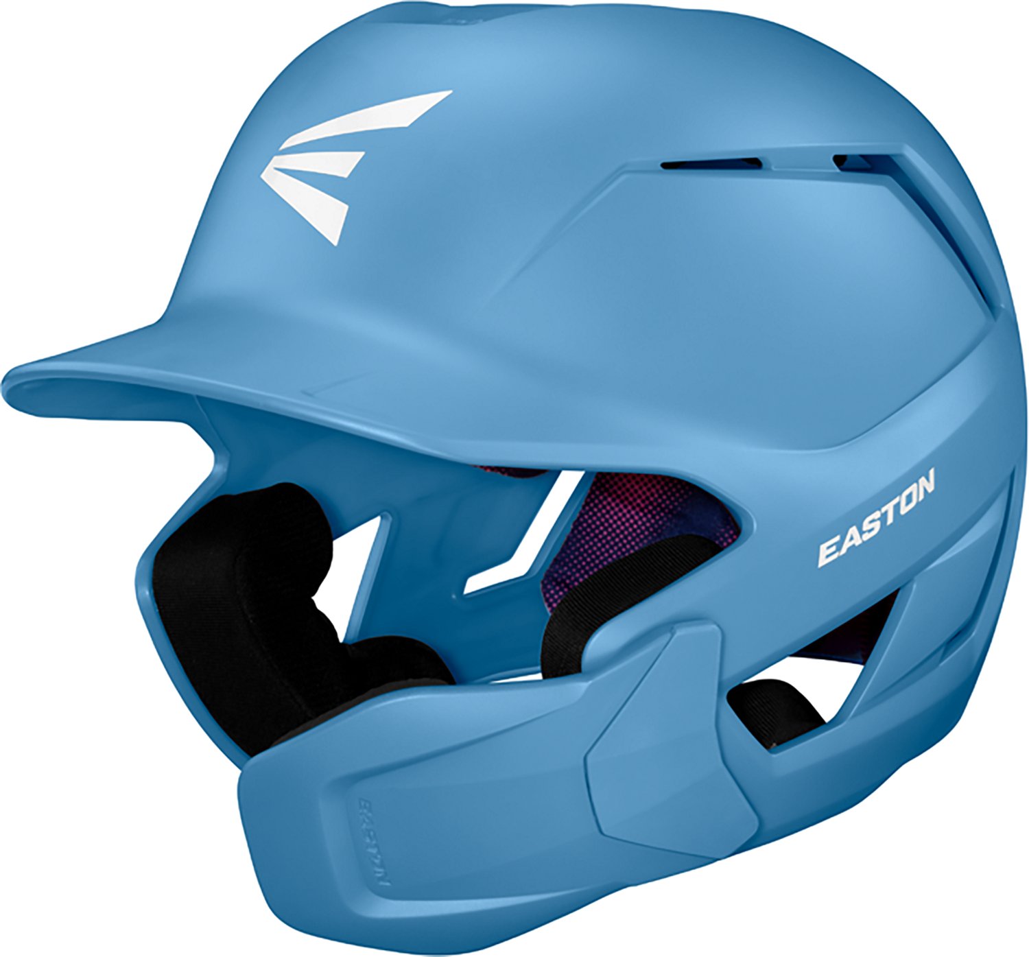 Step up to the plate with the EASTON Men's Z50 Batting Helmet with Multi-Adjust Jaw Guard. The ABS shell affords durability, while the zonal foam placement absorbs impact and provides comfort. The jaw guard system can be mounted on either side on the helmet and rotates up to 25 degrees vertically, and the interior BioDri liner wicks away moisture to keep your head dry.