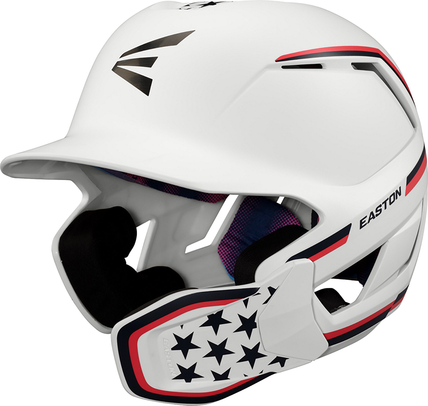 Step up to the plate with the EASTON Men's Z50 Batting Helmet with Multi-Adjust Jaw Guard. The ABS shell affords durability, while the zonal foam placement absorbs impact and provides comfort. The jaw guard system can be mounted on either side on the helmet and rotates up to 25 degrees vertically, and the interior BioDri liner wicks away moisture to keep your head dry.