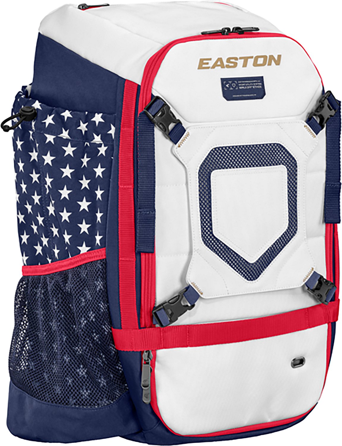 Keep your athletic gear on hand, wherever the game takes you, in this EASTON Walk-Off Ethos Backpack. Its large main compartment, 4 lock-in bat sleeves, dedicated footwear compartment, adjustable helmet holder, expandable mesh pockets and specialized storage zones offer plenty of room for the outing's necessities. Padded straps for comfortable transport. Durable fence hook.