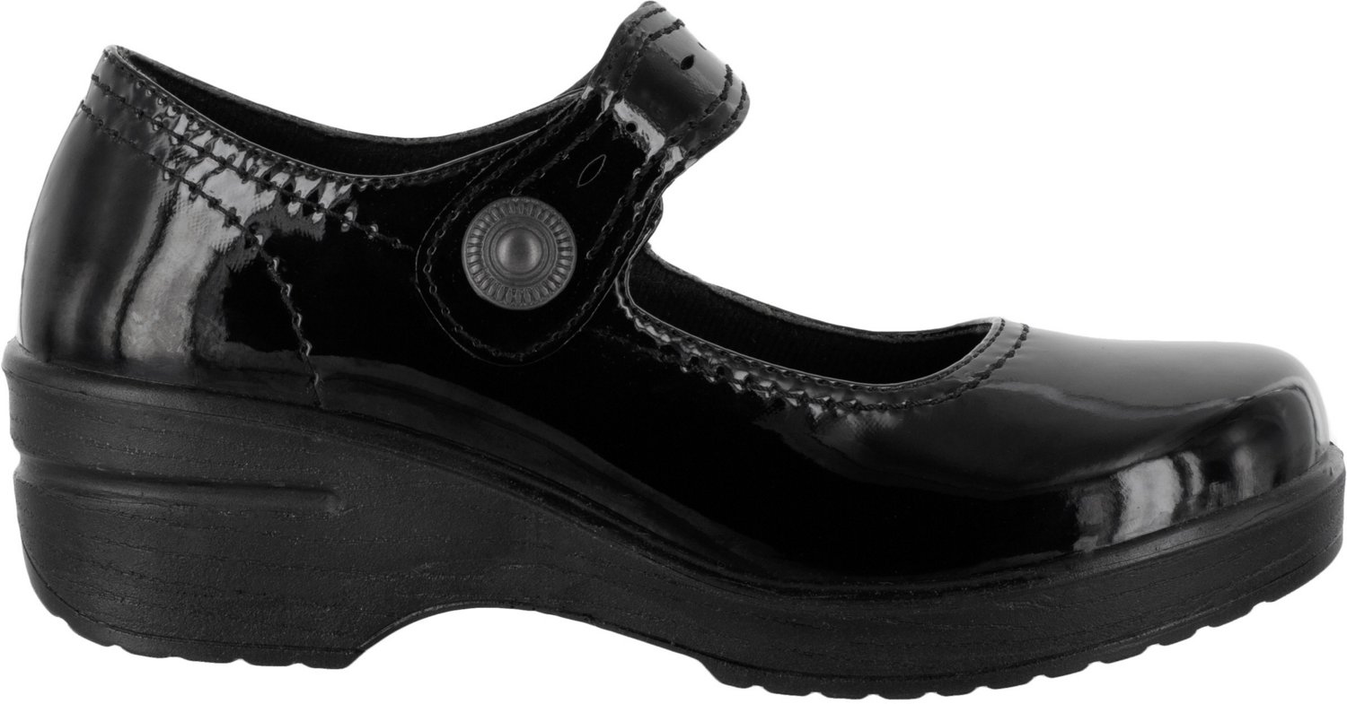 Stay comfortable throughout your work days in the Easy Works by Easy Street Women's Letsee Slip-Resistant Shoes. These shoes feature lightweight synthetic uppers with innovative technology to keep your feet comfortable on long, hard days. The molded footbeds provide comfort and stability, while the outsoles are crafted with grip-inducing rubber treads for shock absorption and slip prevention.