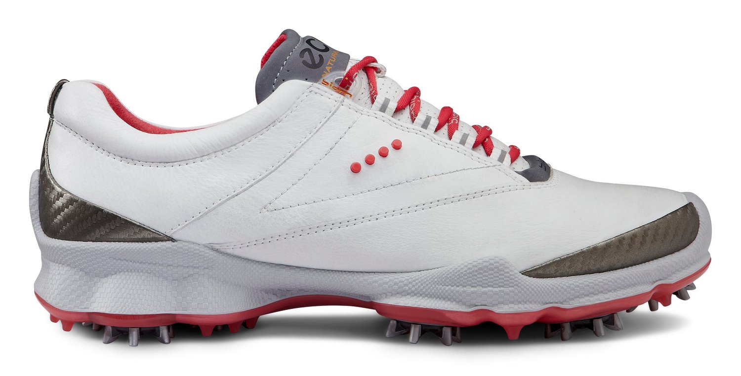 Enjoy a great round of golf in the ECCO Women's BIOM Golf Shoes, which feature yak-leather uppers treated with HYDROMAX™ technology to help your feet stay dry and cleated TPU outsoles with Stinger III spikes for excellent traction. BIOM anatomical shape. Low-to-the-ground design. Lace closures.