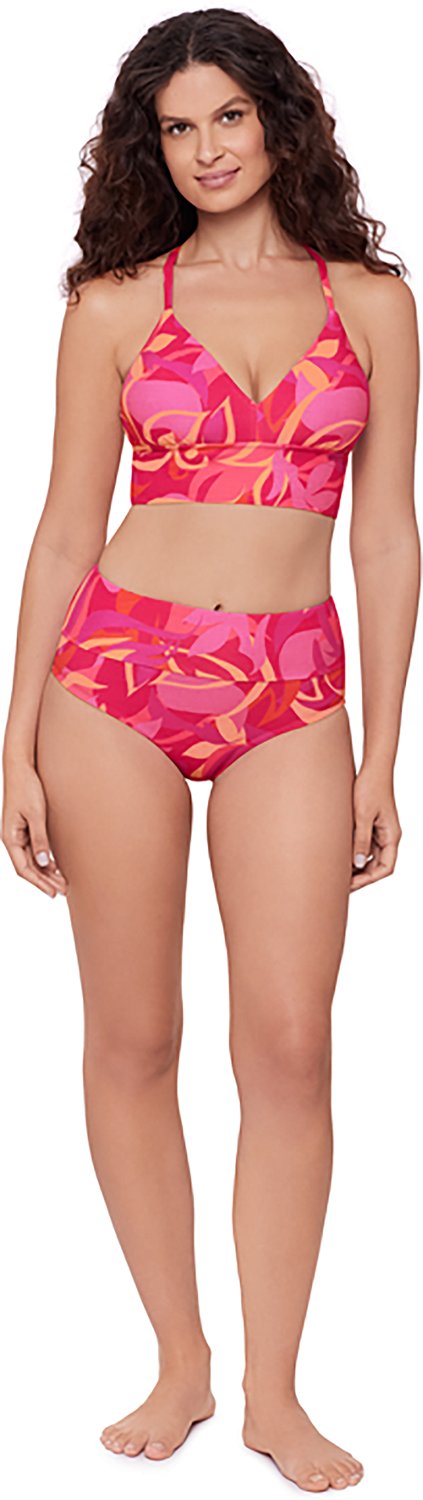 Splash around in the Eco Beach Women's Long Line Bralette Swim Top. Its body is made of 80% recycled nylon and 20% spandex. The lining is made of 50% recycled polyester and 50% polyester, and its bralette style offers more coverage. The all-over pattern provides an eye-catching design.