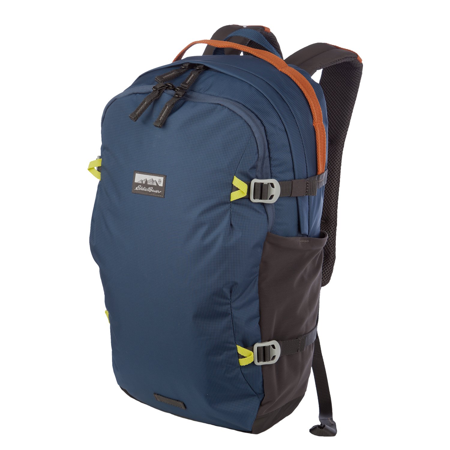 Equip yourself for everyday adventure with the Eddie Bauer 28L Nomad Daypack. Waterproof nylon provides durable protection against moisture, while 2 main compartments and multiple exterior and interior pockets provide ample storage. A hydration-compatible sleeve provides padded support for a tablet or laptop. The removable waist strap and adjustable sternum strap help you comfortably carry heavy loads.