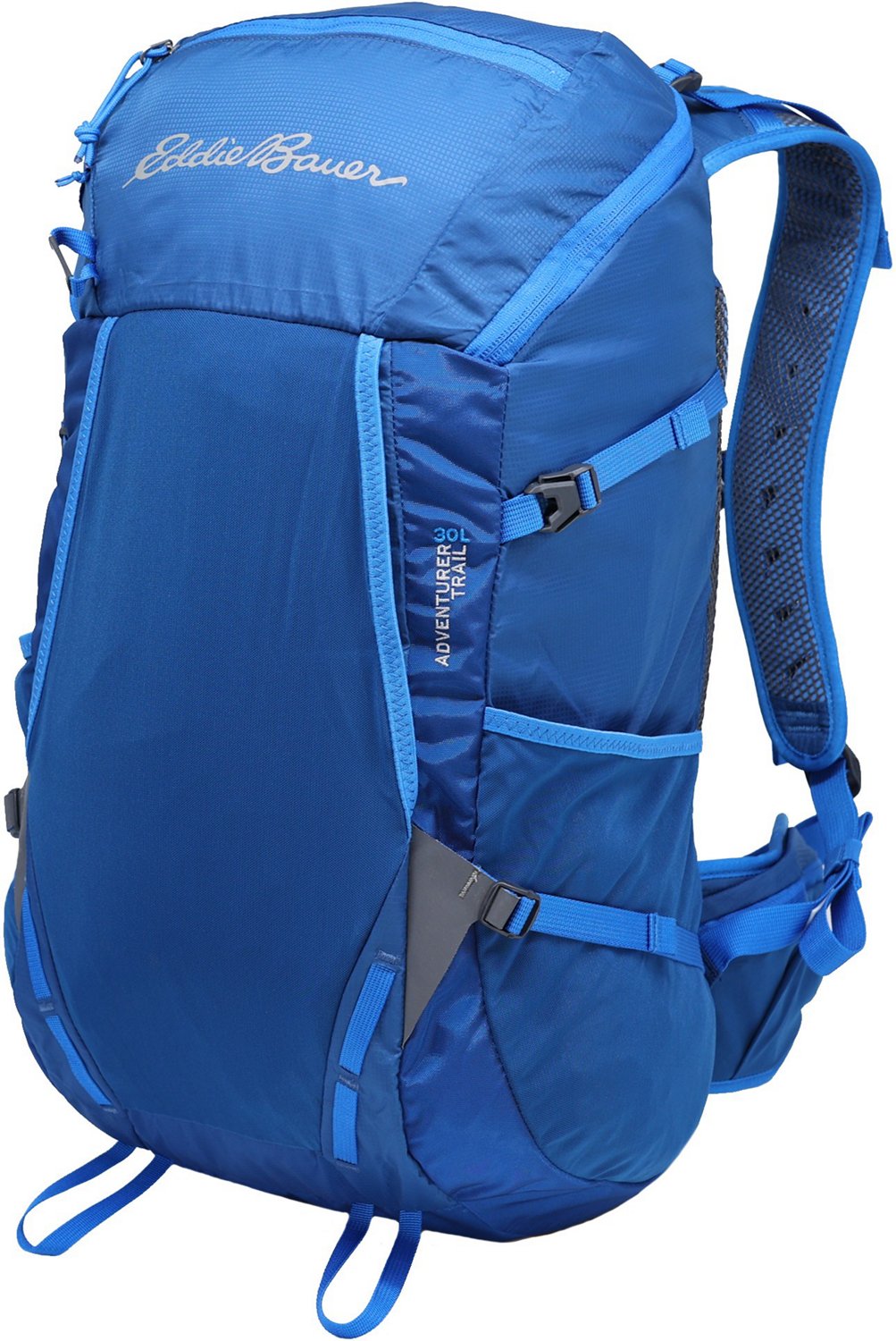 You can pack all of your gear and necessities for a hike packed into the Eddie Bauer Adventurer Trail Frame 30L Backpack. The FreeCool trampoline airflow back panel helps support your gear while also keeping you cool, and the 70-denier ripstop nylon delivers durability and resilience. An interior sleeve allows you to stay hydrated with a hydration bladder, and the water-resistant finish keeps you and your items dry.