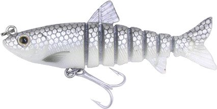 Great for luring trout, reds, snook and other inland species, the Egret Baits Vudu 3-1/2" Mullet Swim Bait features a small finger mullet design with a jointed body and 3-D eyes and a VMC Saltwater size 4 treble hook. Weighs 1/4 oz.