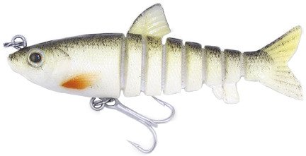 Great for luring trout, reds, snook and other inland species, the Egret Baits Vudu 3-1/2" Mullet Swim Bait features a small finger mullet design with a jointed body and 3-D eyes and a VMC Saltwater size 4 treble hook. Weighs 1/4 oz.