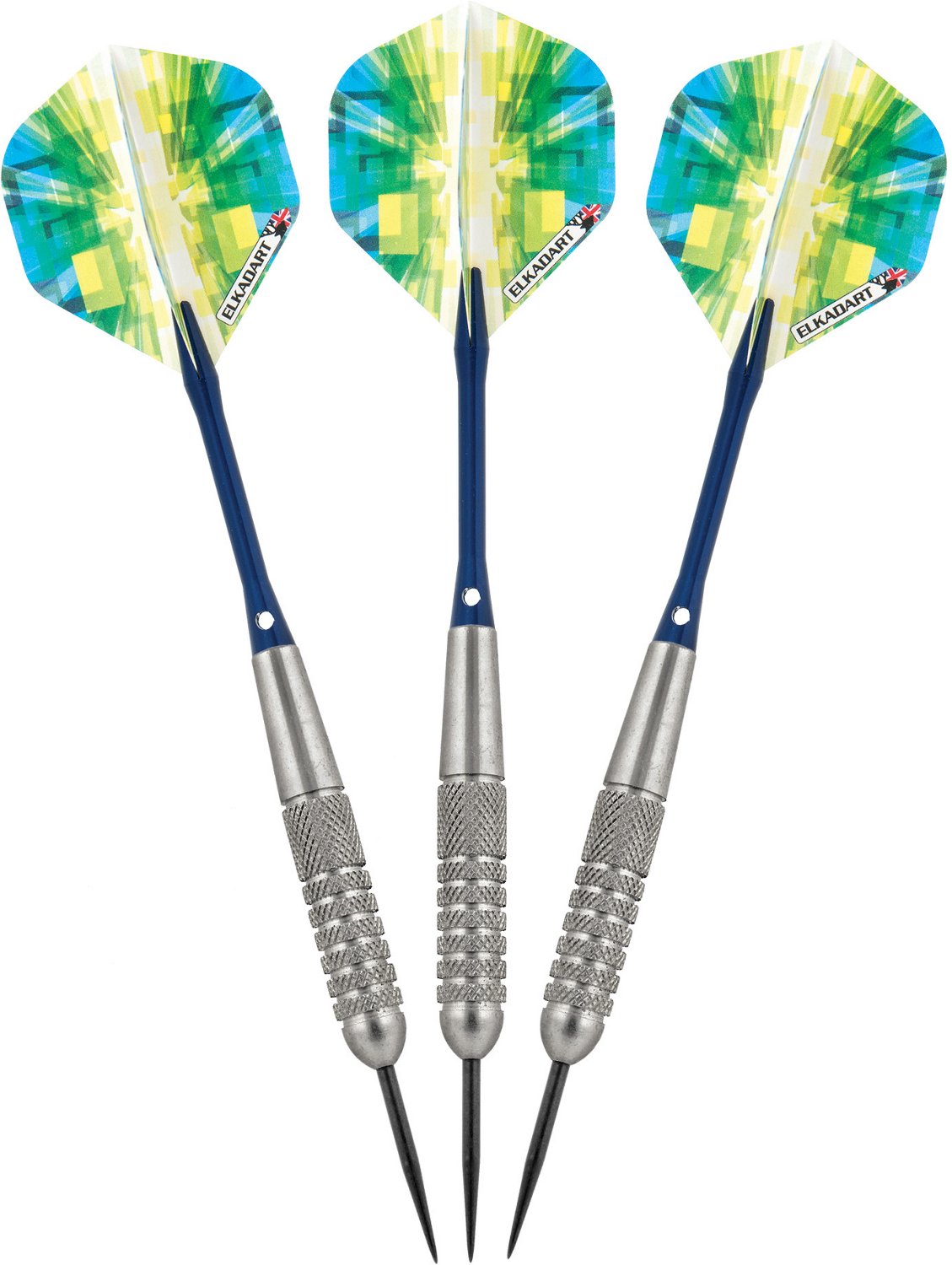 With the Elkadart Prism Ringed 22 g Steel-Tip Darts 3-Pack, you'll be headed straight for the bull's-eye. That's because the ringed barrels afford extra grip, so you can throw with precision. A unique graphic on the flights makes these darts an excellent addition to your collection. Steel tips. 22 grams.