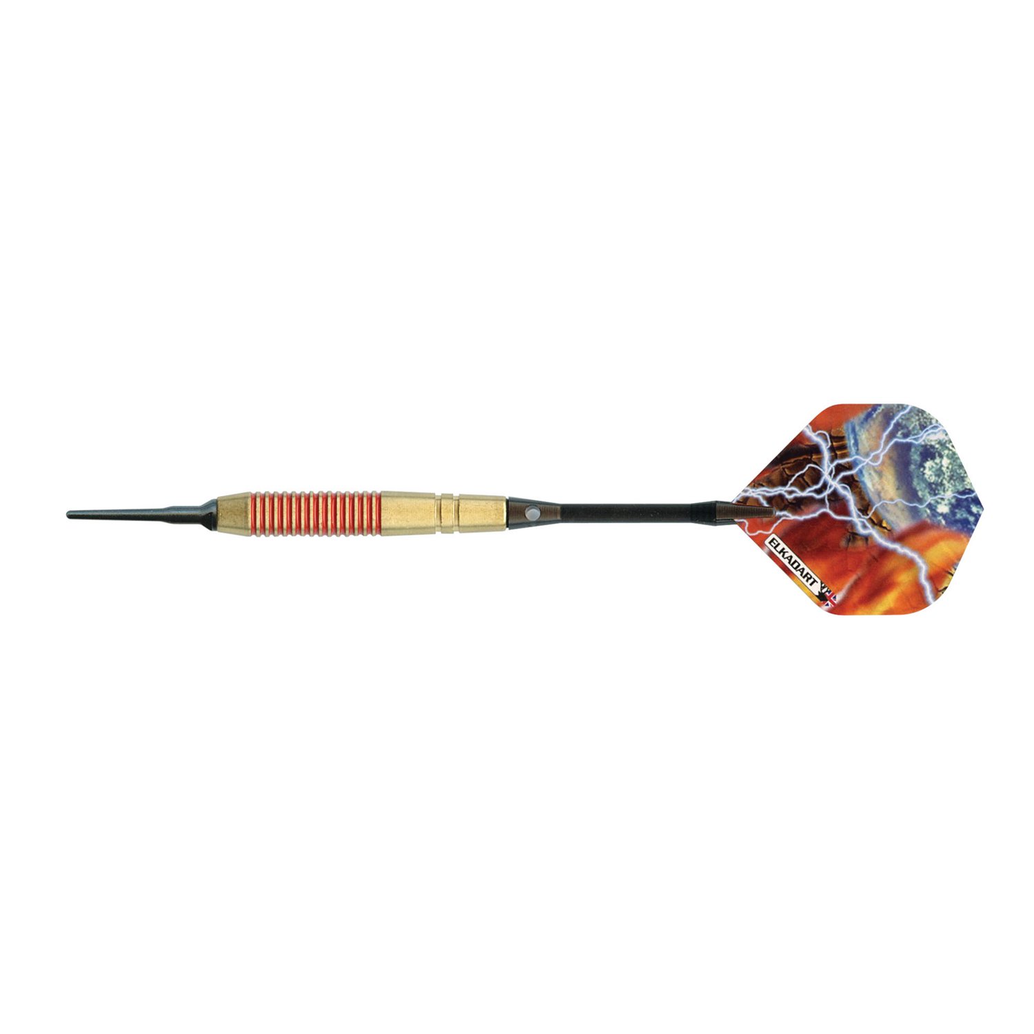 Rack up the points with the Elkadart Storm 16-Gram Soft-Tip Darts 3-Pack, which feature ringed brass barrels and aluminum shafts that provide great grip and a lightweight feel. The 2-D flights with colorful graphics offer a cool look, and the included slim case enables easy storage. 2BA tips.