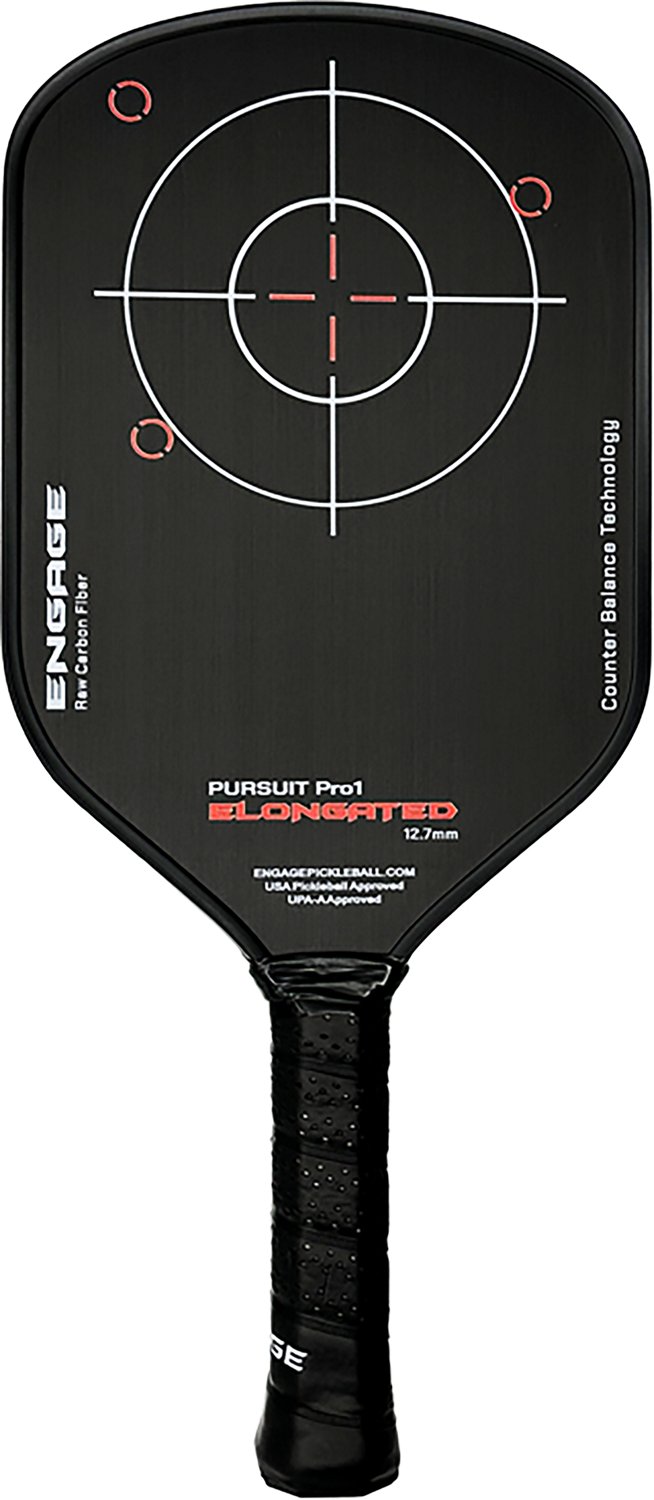 Designed with a Raw Carbon Fiber skin and an inner application layer, the Engage Sporting Pursuit Pro1 Innovation Pickleball Paddle is your go-to paddle for maximum spin. The paddle is designed with a MachPro Polymer Core, which helps offer power and spin, and Uniform Guard Technology to help distribute force.