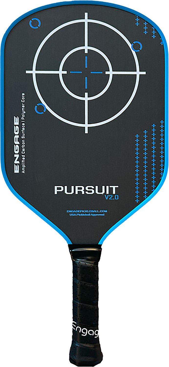 You can achieve greatness when you look to the Engage Sporting Pursuit V2.0 Pickleball Paddle for your next match. This pickleball paddle is made with an amplified carbon skin to provide a responsive feel, and its Response+ Polymer Core and hybrid shape combine to deliver a blend of power, spin and control.