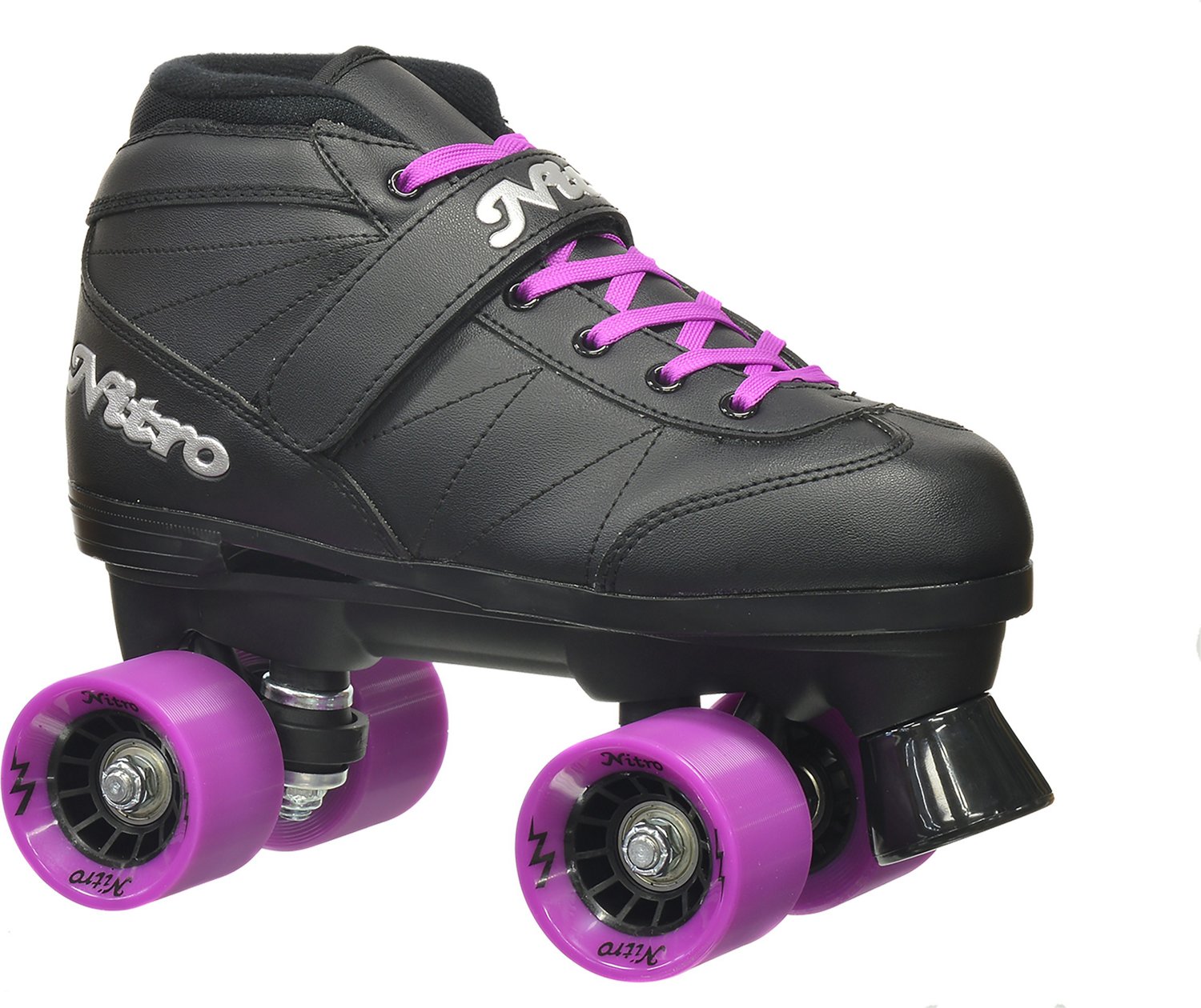 Skate in comfort and style with the Epic Skates Youth Super Nitro Roller Skates. These skates feature a classic quad speed skate design with man made uppers and a padded collar for a durable and comfortable wear. The slotted hub wheels with speed groves are suitable for indoor and outdoor surfaces and allow you to skate super fast.