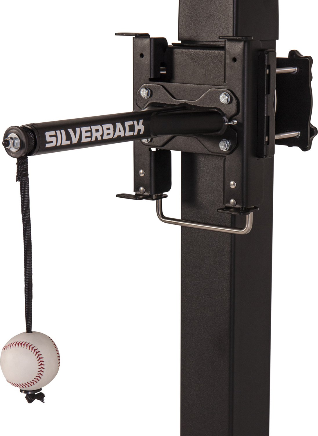 Work on your hitting skills with the Escalade Sports Silverback Portable Baseball Swing Trainer. The trainer is designed to improve muscle memory. timing and contact, while the tethered baseball helps maximize efficiency. The spin of the ball delivers near instant feedback, and the Lock 'n Rock technology allows for easy mounting and dismounting.