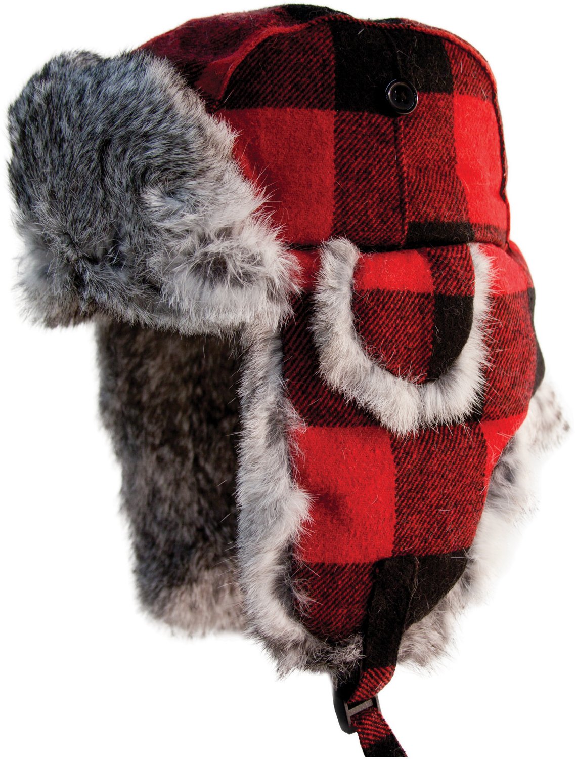 Stay stylish and warm through any activity with the Eskimo Plaid Alaskan Fur Hat. Perfect for winter recreation, the hat features a sturdy flannel shell with genuine rabbit fur for extra softness. Snap buckles and buttons let you adapt your fit to different situations.