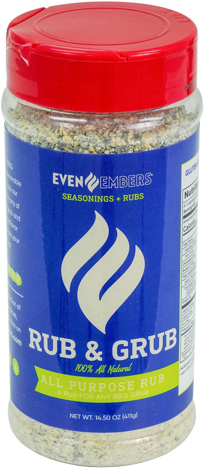 Give your next cookout some extra kick with the Even Embers All Purpose Rub. This classic spice blend is designed for multipurpose use and pairs well with pork, beef, chicken, and even veggies. It features 100% natural ingredients and includes zero gluten, MSG or GMOs, letting you enjoy and share a worry-free meal.