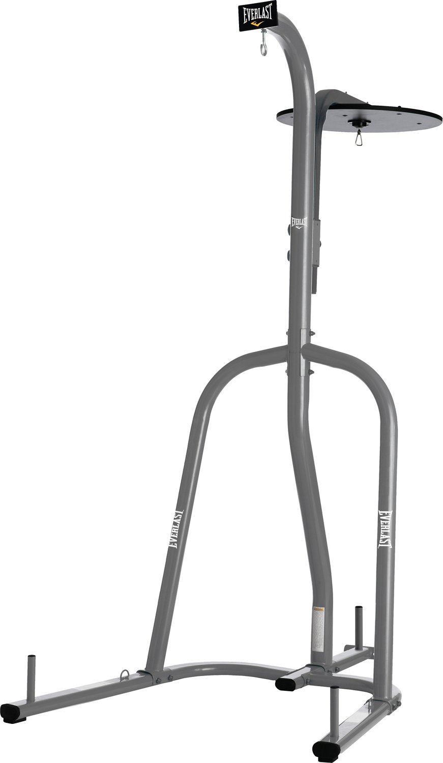 Get a great bag training workout with the sturdy Everlast® Dual Station Bag Stand, which features heavy-duty, powder-coat steel tubing for long-lasting use. The stand accommodates heavy bags up to 100 lb., and the adjustable-height speed bag platform makes the bag stand suitable for use with most speed bag sizes. Easy to assemble.