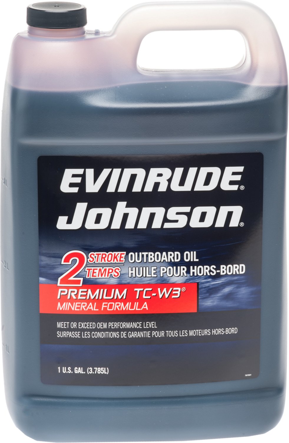 For use with carbureted engines under 100 HP, the Evinrude Johnson Premium TC-W3® Mineral Formula is designed to reduce carbon deposits and help keep engines clean for optimal performance and long life. This formula exceeds NMMA TC-W, TC-WII, TC-W3 and TC-W3RL specifications. 1 gallon.